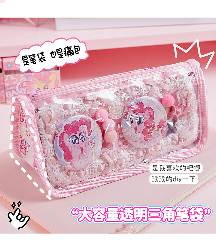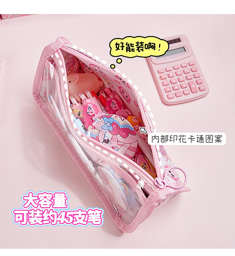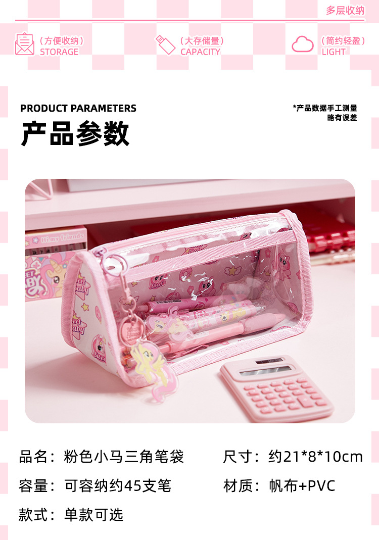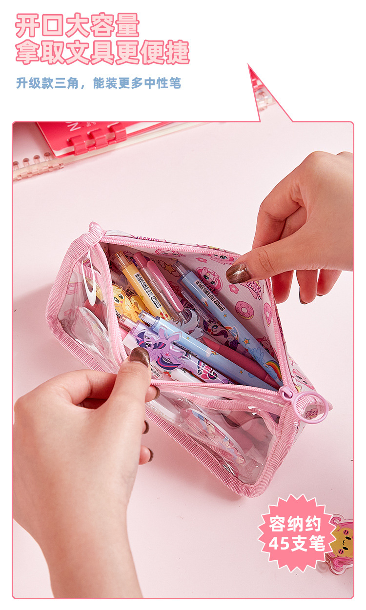 Dolor bebé pony bolsas de lápiz de alto valor de la cara de los estudiantes de primaria caja de lápiz triangular transparente niñas bolsas de papelería de gran capacidad