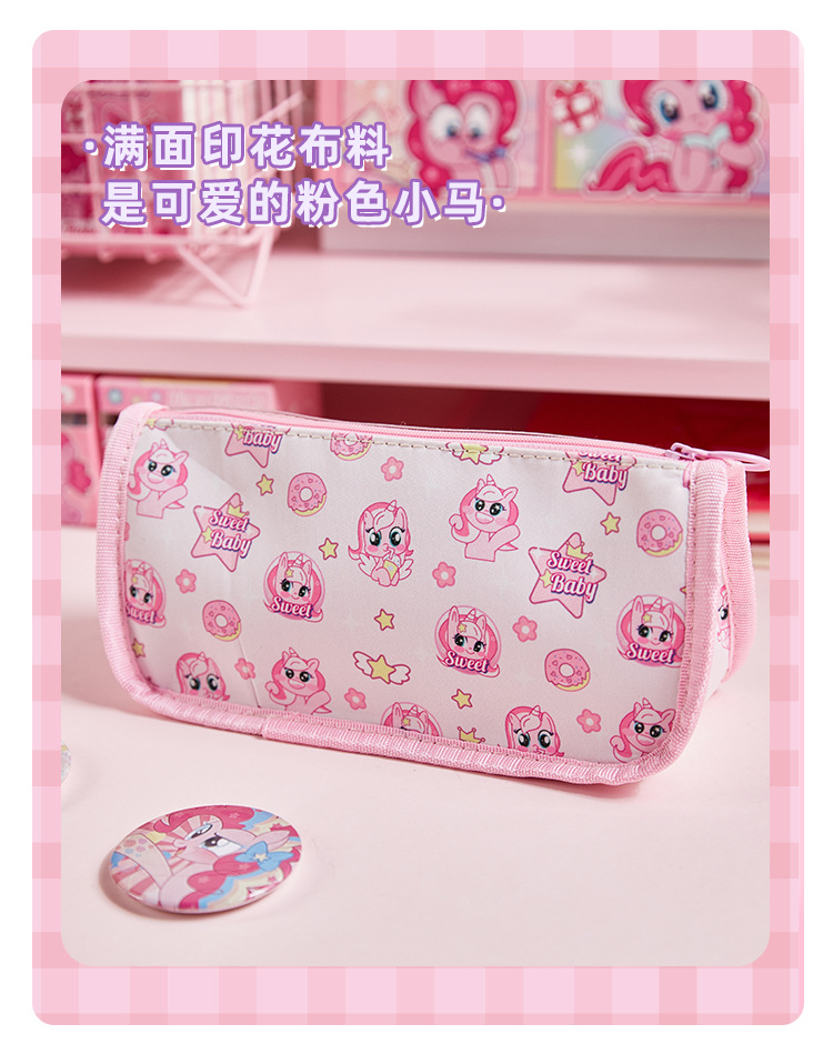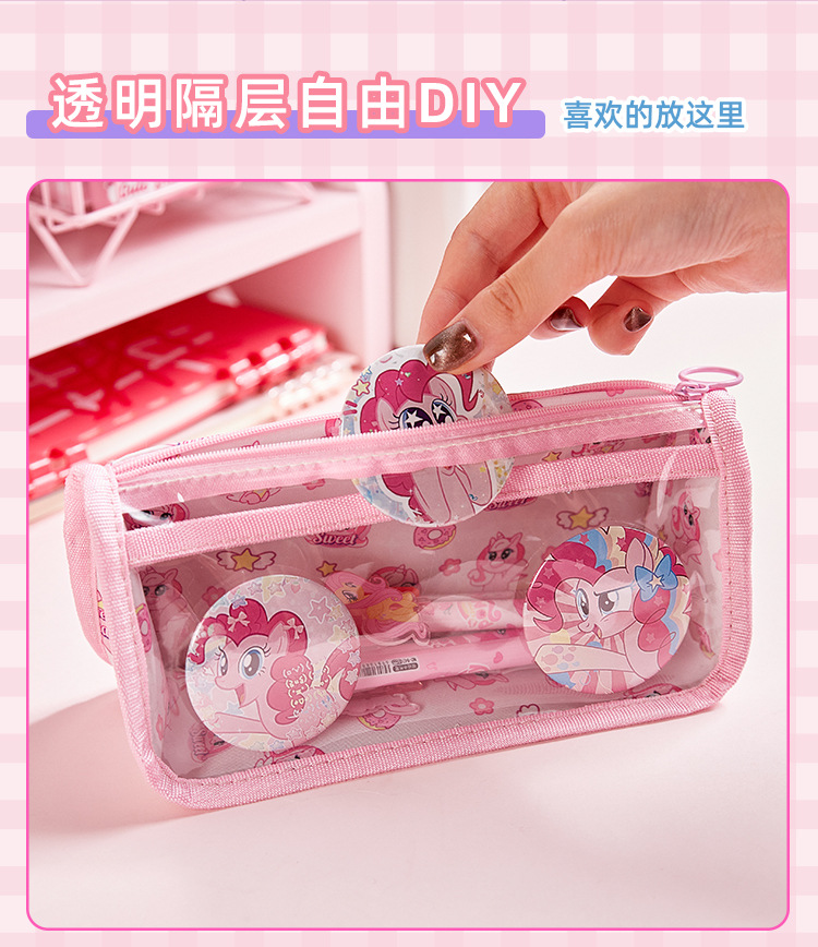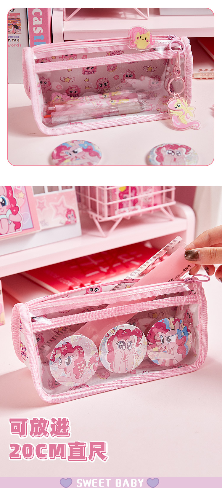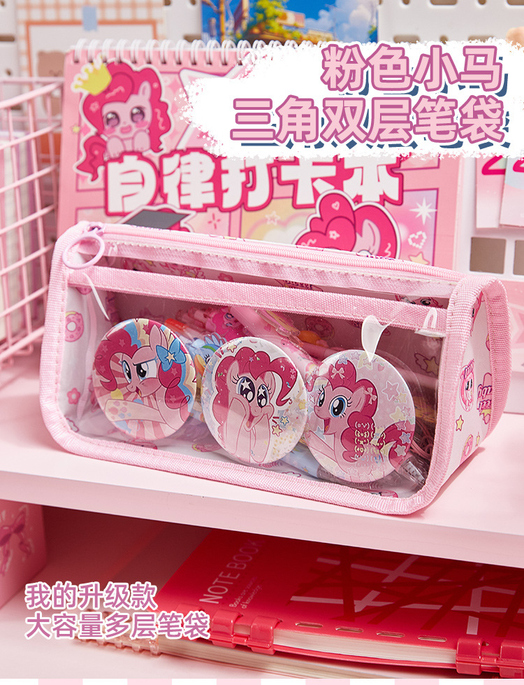 Dolor bebé pony bolsas de lápiz de alto valor de la cara de los estudiantes de primaria caja de lápiz triangular transparente niñas bolsas de papelería de gran capacidad