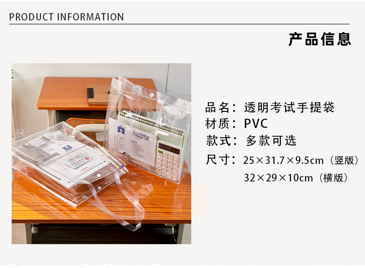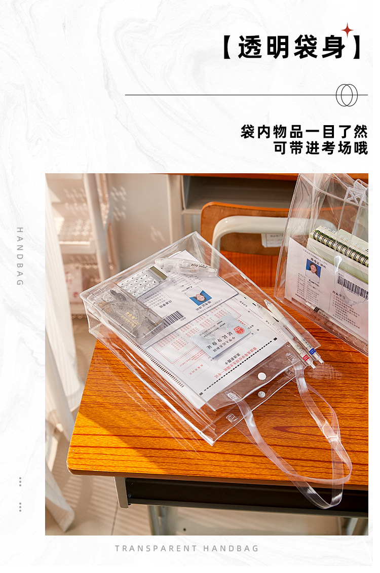 Nuevo bolso transparente, bolsa especial para examen, bolsa de archivo de examen de ingreso a la escuela secundaria de PVC, bolsa de almacenamiento engrosada de gran capacidad