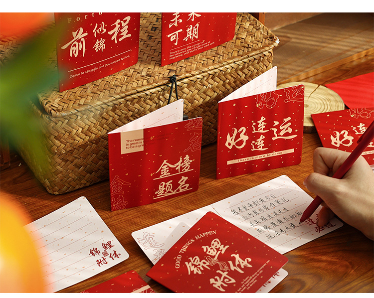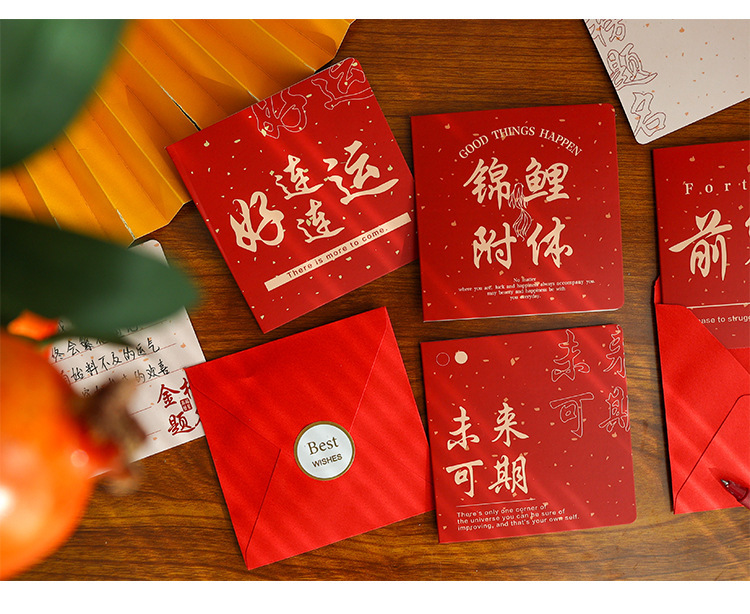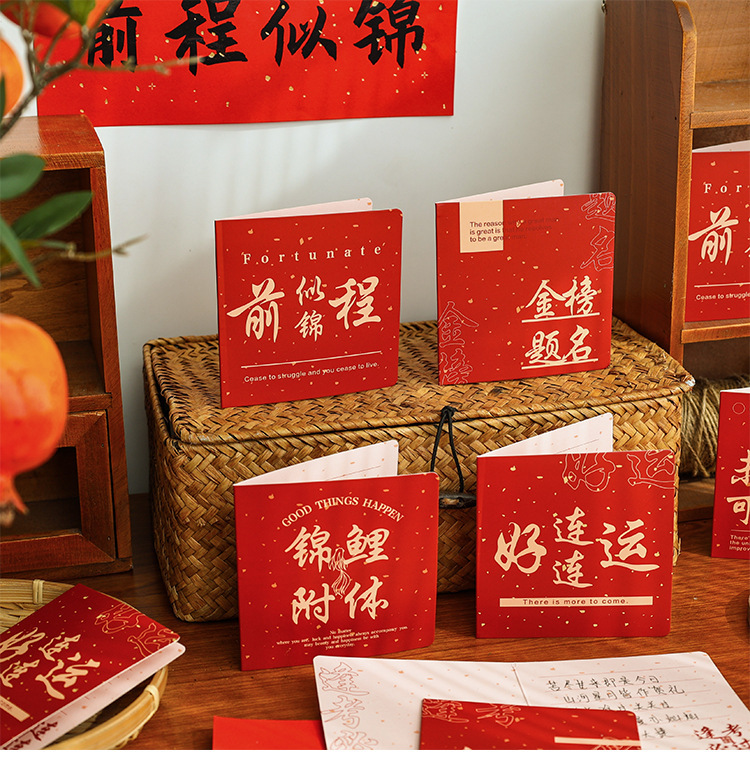Estilo chino creativo día de Año Nuevo tarjeta de felicitación de Año Nuevo texto inspirador bendición de cumpleaños regalo Tarjeta de mensaje en blanco tarjeta pequeña