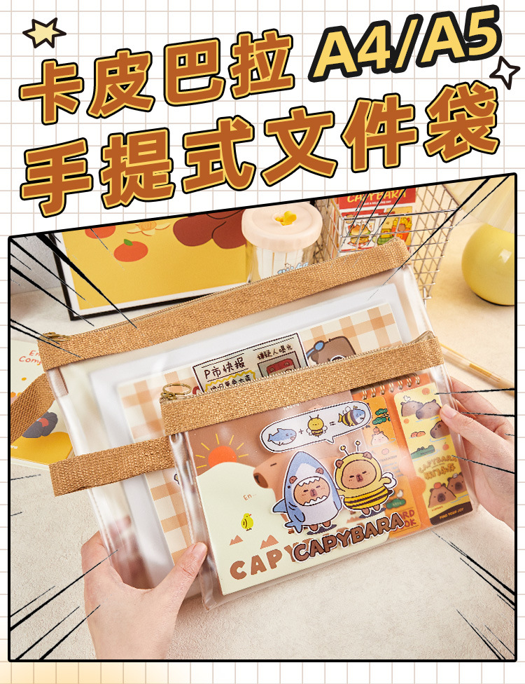 Capabala A4A5 bolsa de archivo con cremallera bolsa de papel de prueba de estudiante bolsa de almacenamiento de archivos engrosada de gran capacidad