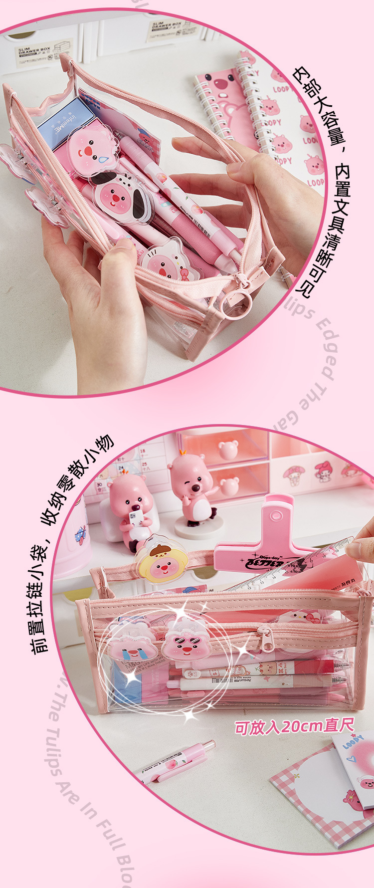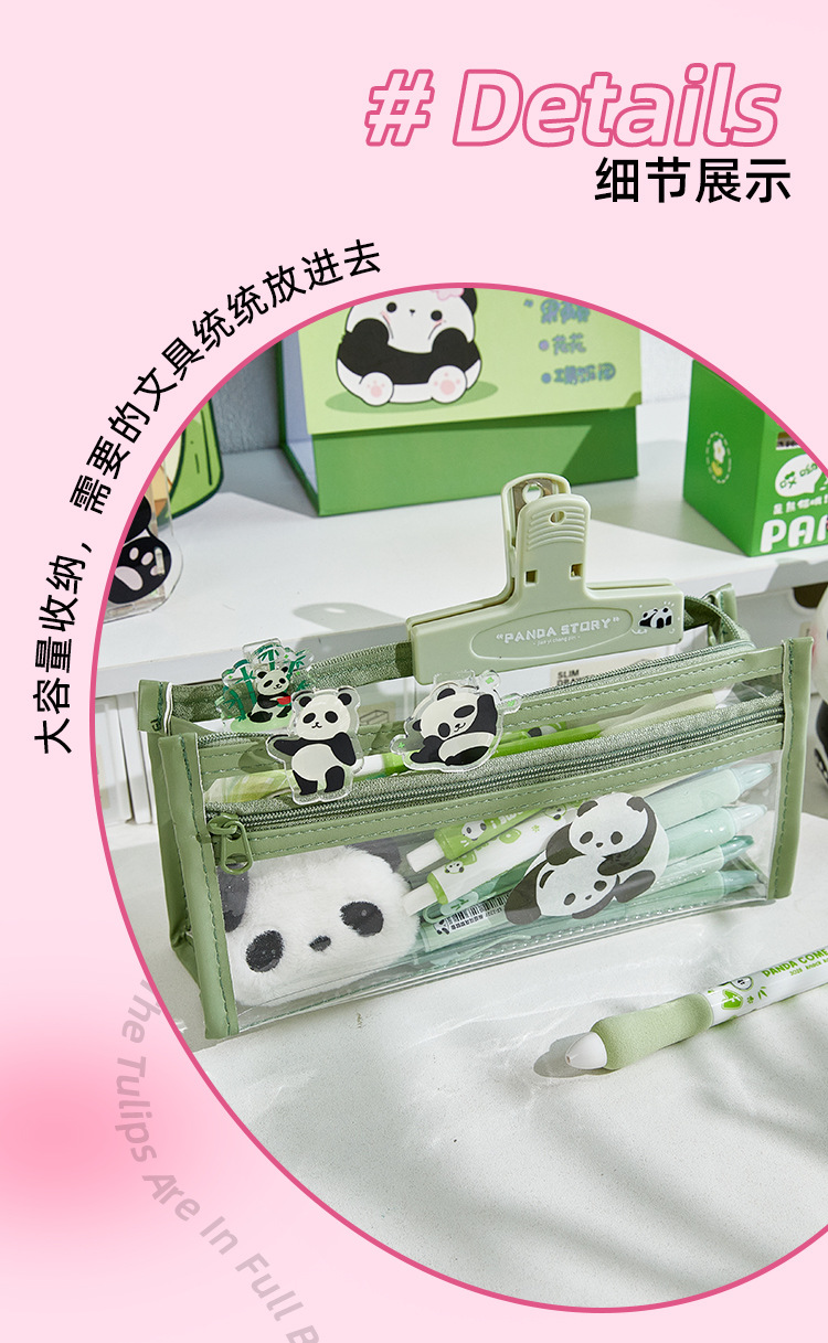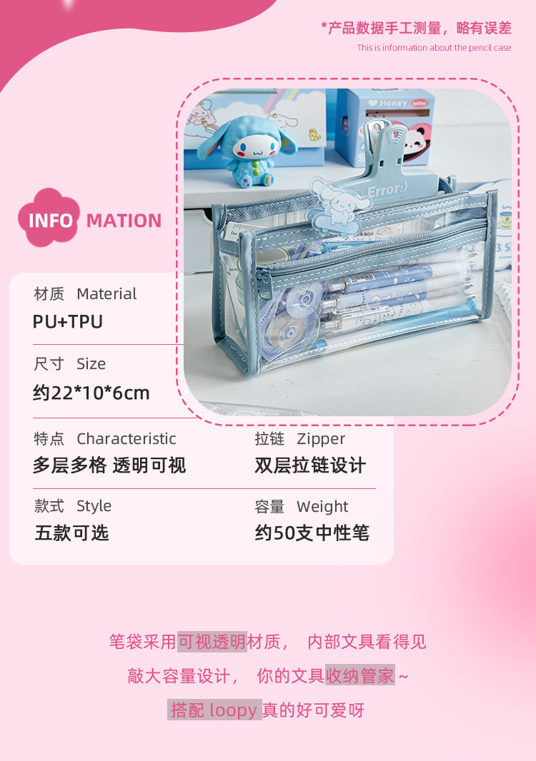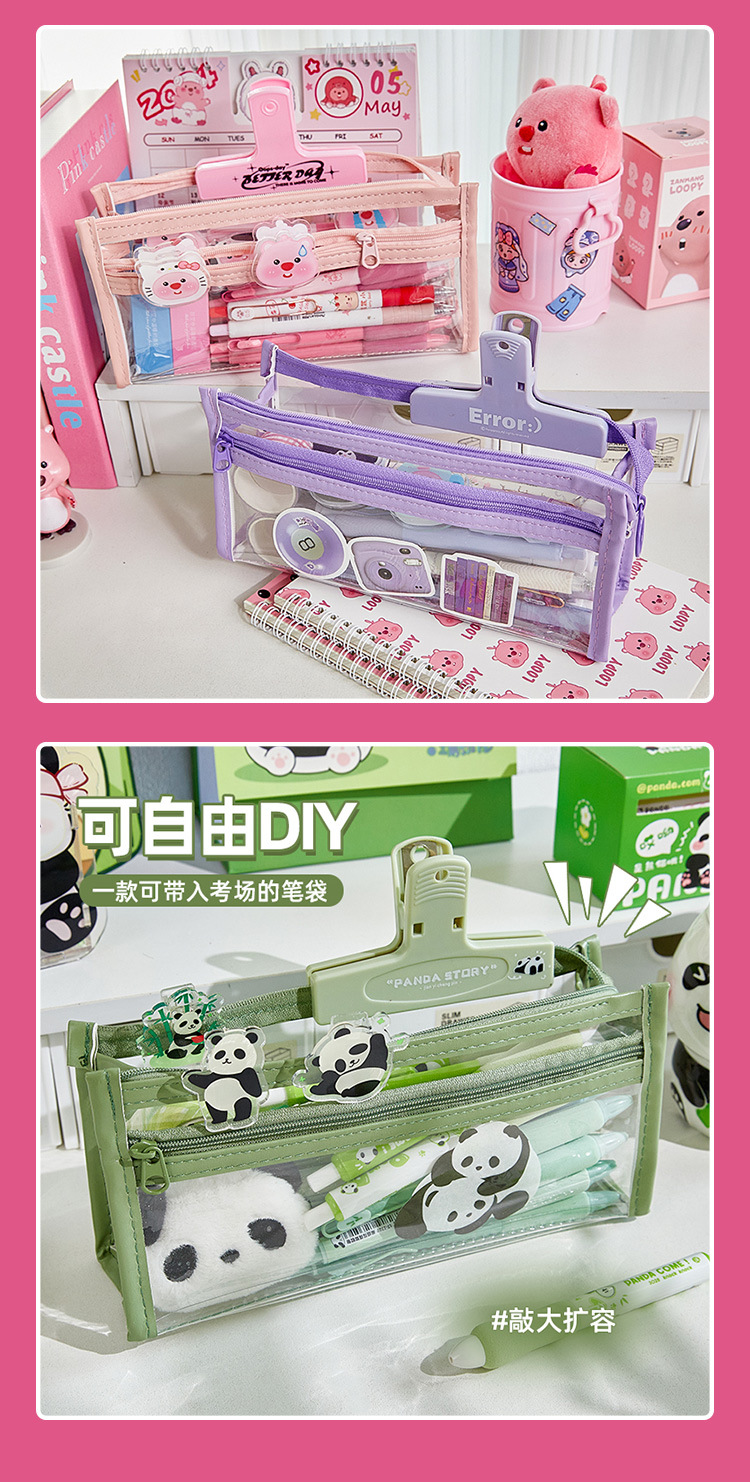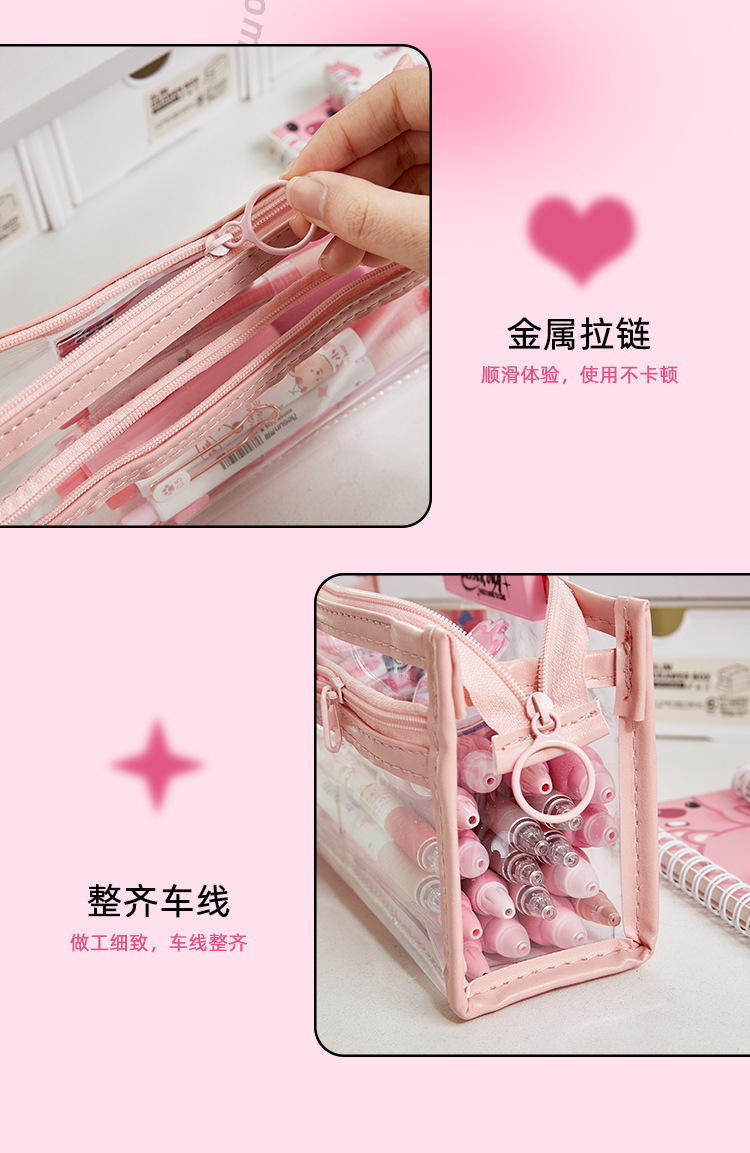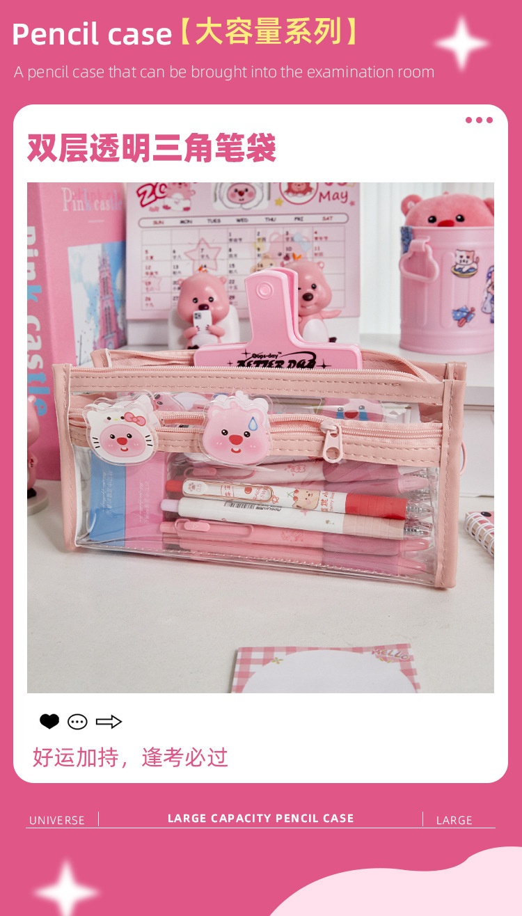 Doble capa transparente Lubi Castor pequeño lápiz caso examen lápiz caso Escuela Primaria Niña de alta apariencia papelería bolsa lápiz caso