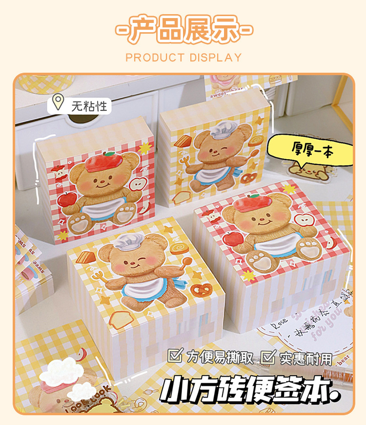 Cariño oso pequeño cuaderno de notas de los estudiantes puede desgarrar no adhesivo post-paste engrosado papel de notas de notas cuaderno de palabras
