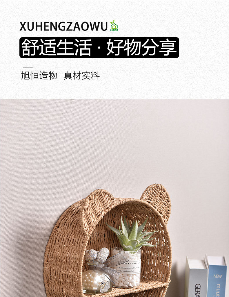 Estante de tela de caña de orejas de gato canasta de almacenamiento redonda estante de almacenamiento de cosméticos colgado en la pared del dormitorio estante de exhibición de plantas suculentas
