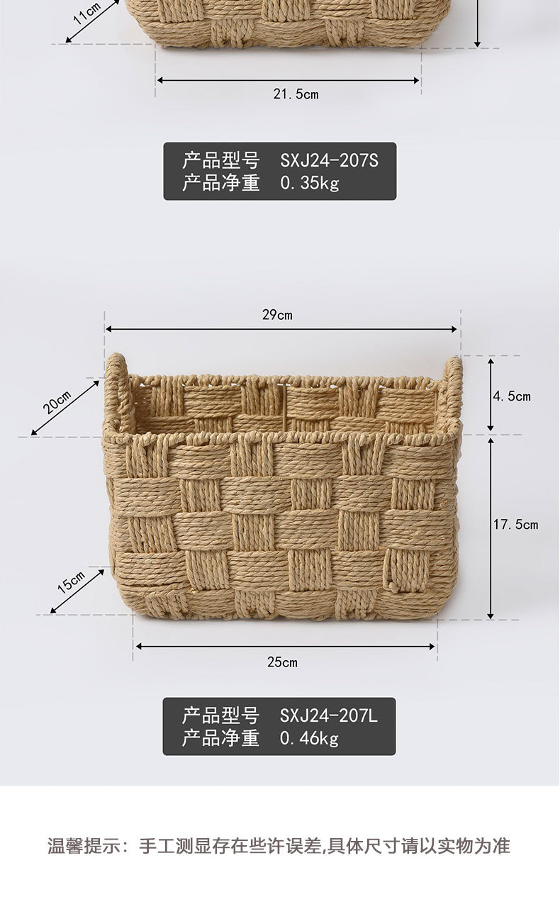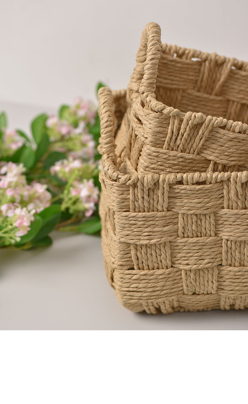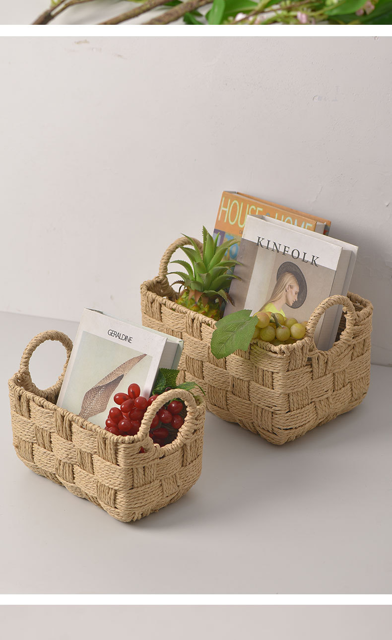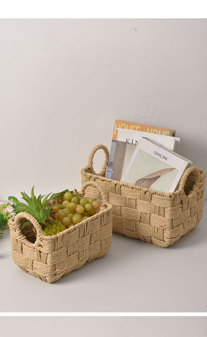 Cesta de almacenamiento de cuerda de papel tejida a mano, caja de almacenamiento de frutas y verduras de cocina, caja de almacenamiento de juguetes simple para niños, almacenamiento de escritorio