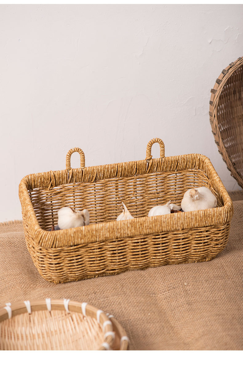 Cesta de almacenamiento montada en la pared de imitación de ratán Cesta de almacenamiento de ajo de jengibre de cocina tejida a mano Cesta de almacenamiento de pared de baño Decoración de pared