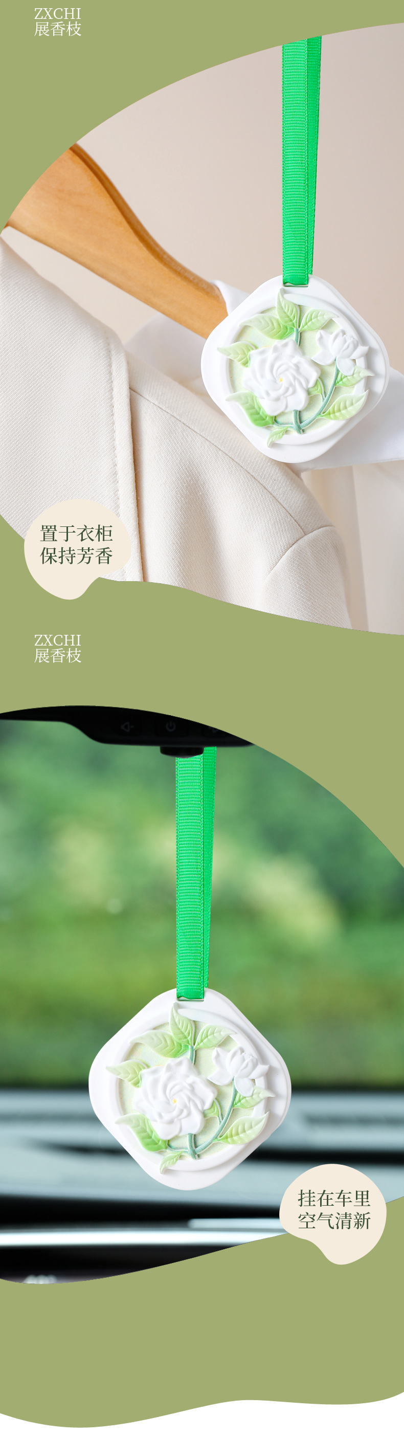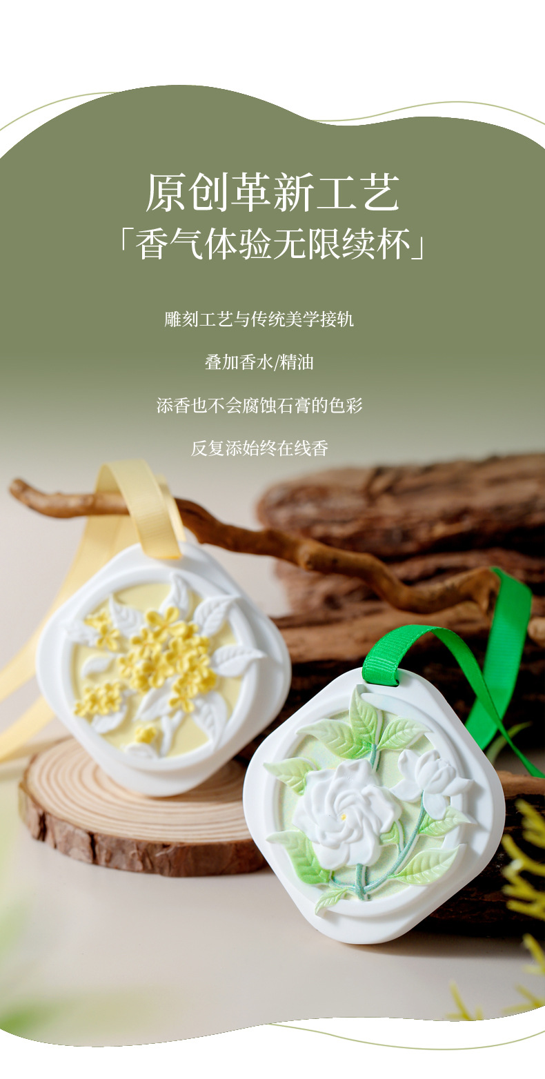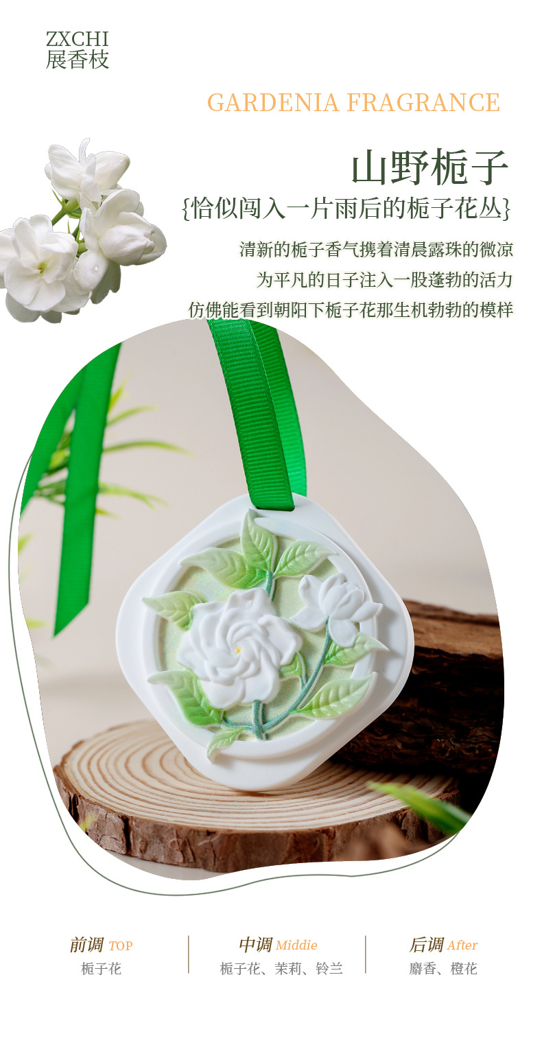 Aromaterapia de yeso de gardenia de montaña de alto valor nuevo dormitorio interior colgante de fragancia de coche colgante de yeso de alta calidad