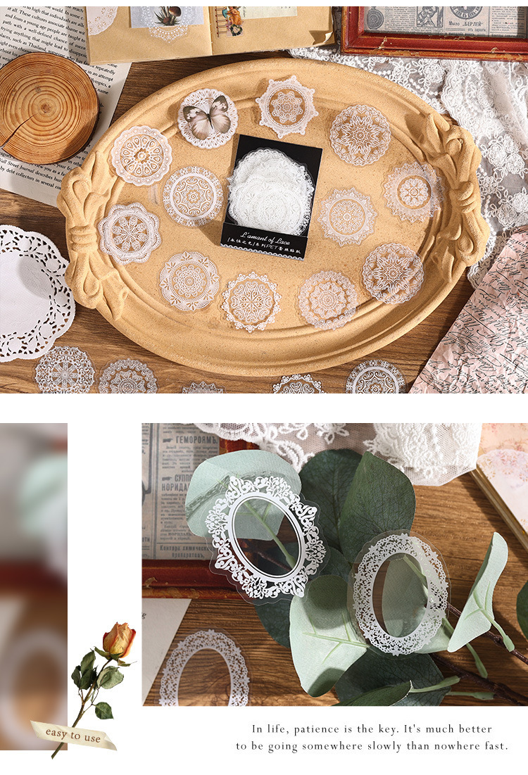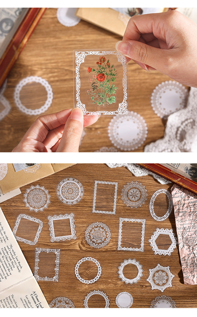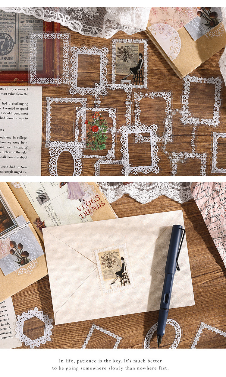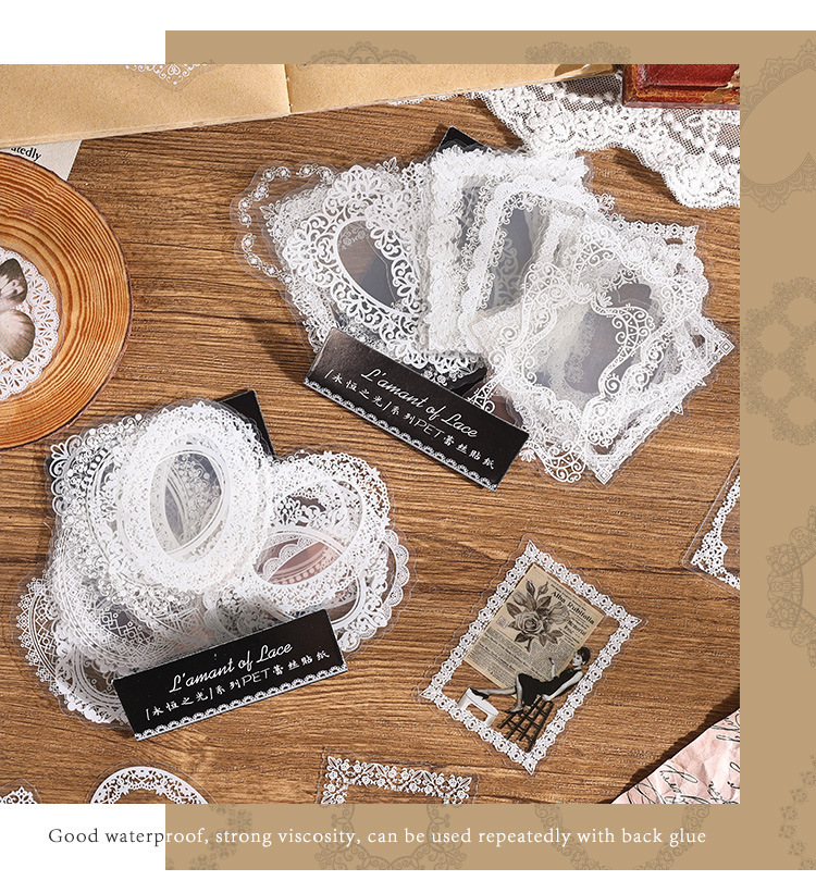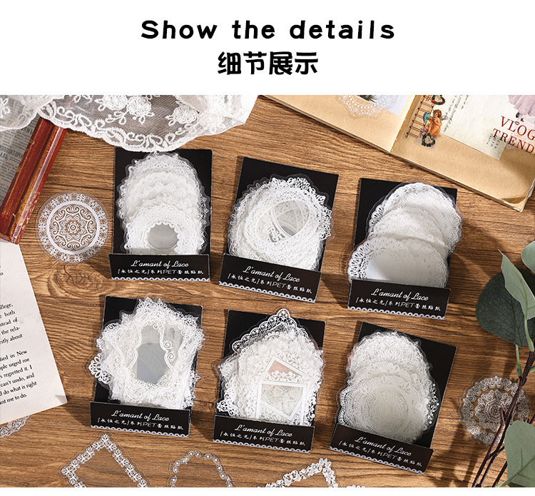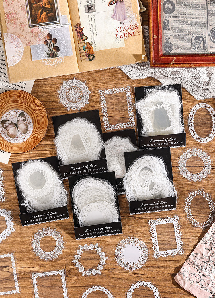 PET paquete de pegatinas de cuentas de mano de encaje en blanco y negro serie de sal retro borde de cuentas de mano de tarjeta Gú material decorativo pegatinas se pueden personalizar