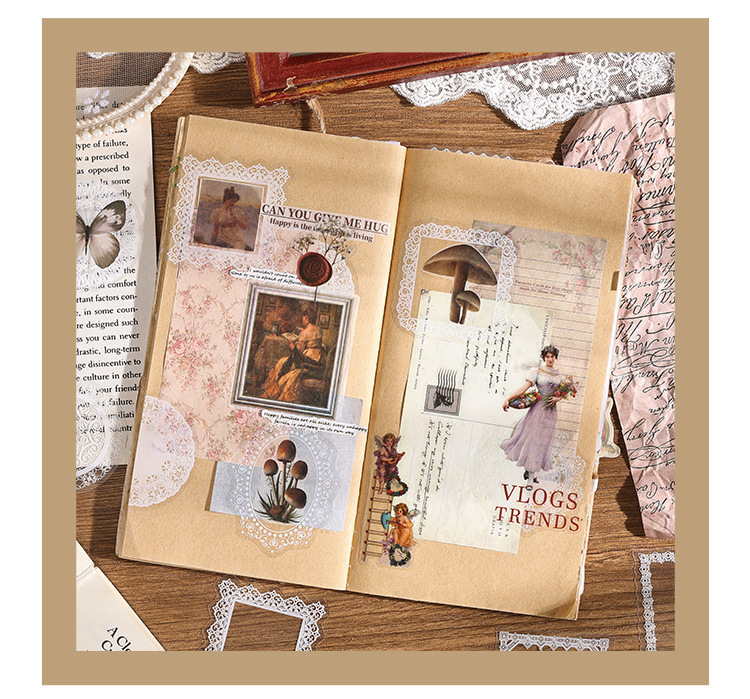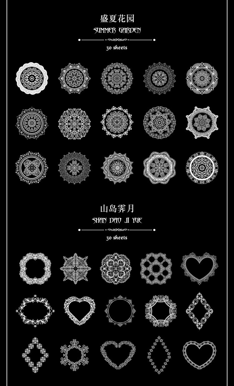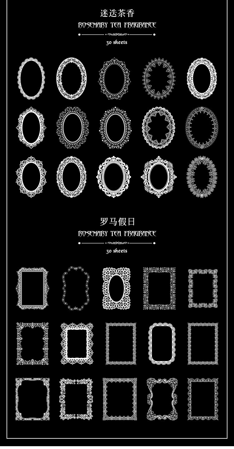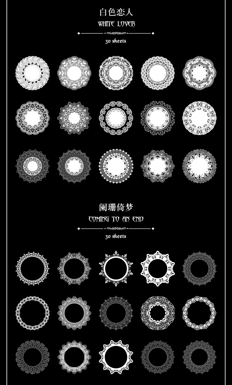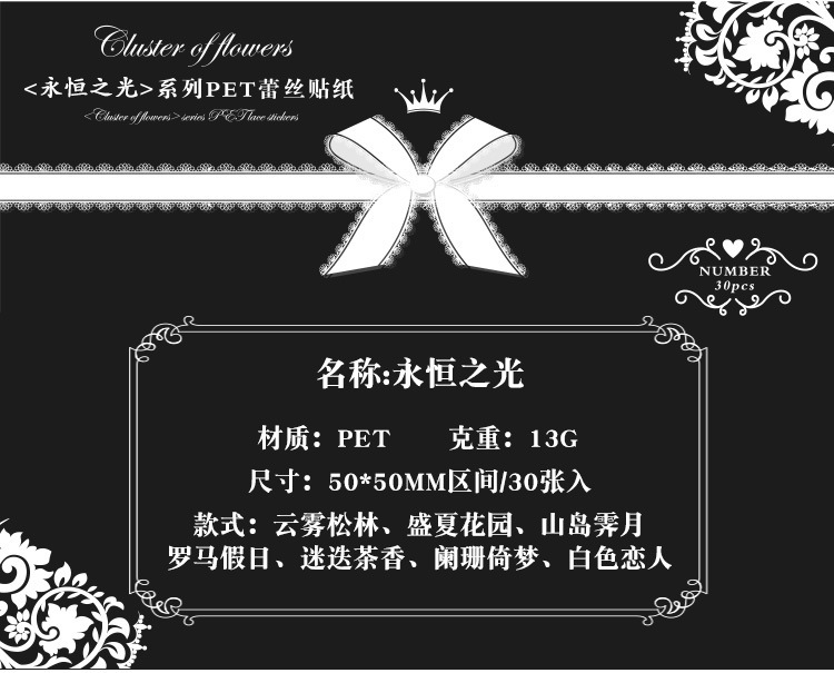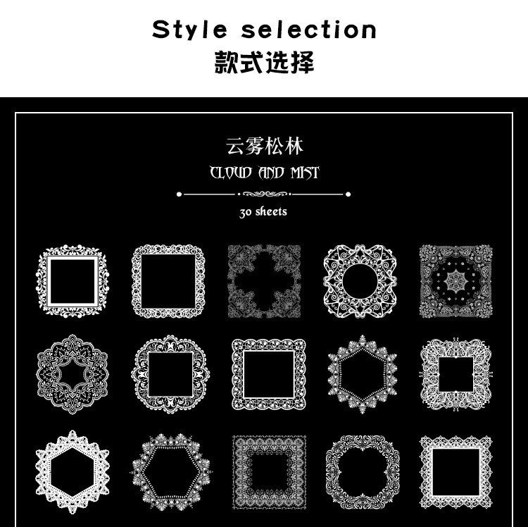 PET paquete de pegatinas de cuentas de mano de encaje en blanco y negro serie de sal retro borde de cuentas de mano de tarjeta Gú material decorativo pegatinas se pueden personalizar