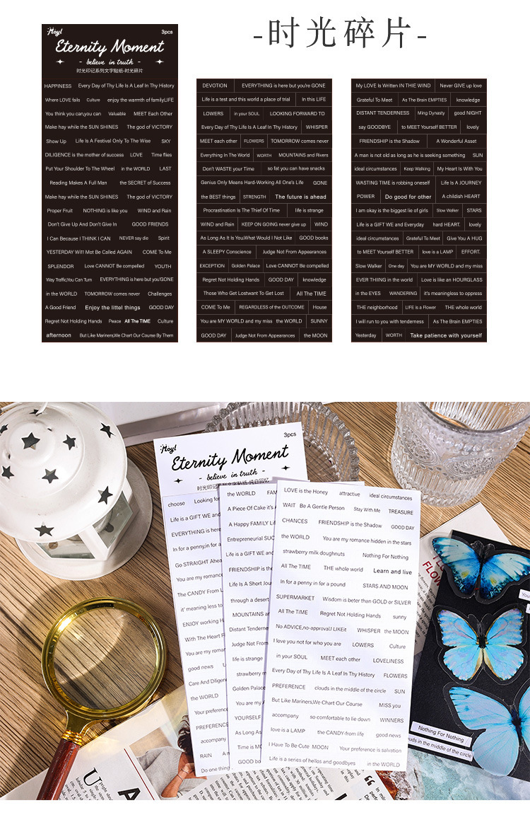 Pegatinas simples y de papel para cuentas de mano Texto alfabeto inglés Collage retro americano Decoración de cuentas de mano Pegatinas de material de bricolaje