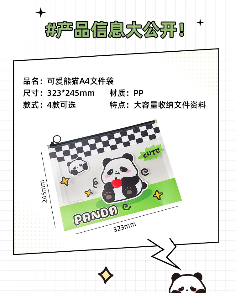 | Color | Lindo Panda A4 bolsa de borde [1 aleatorio],Lindo Panda A4 bolsa de borde [Paquete de 4] |