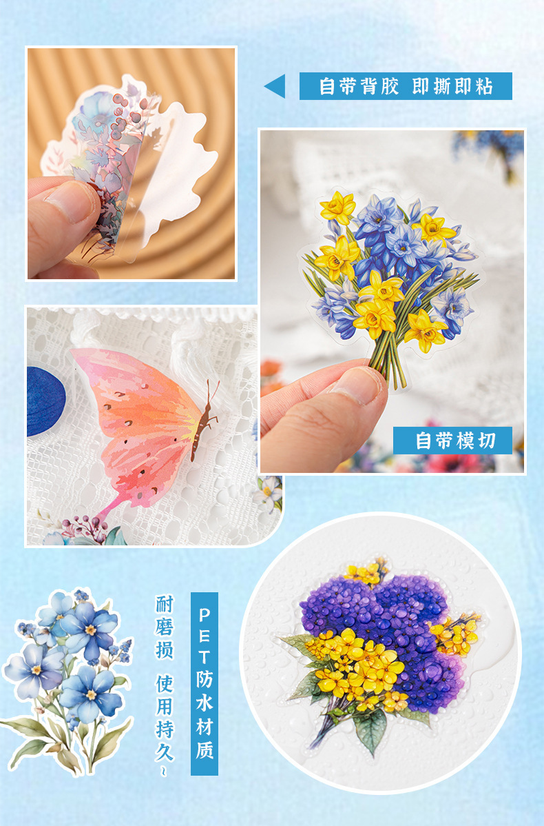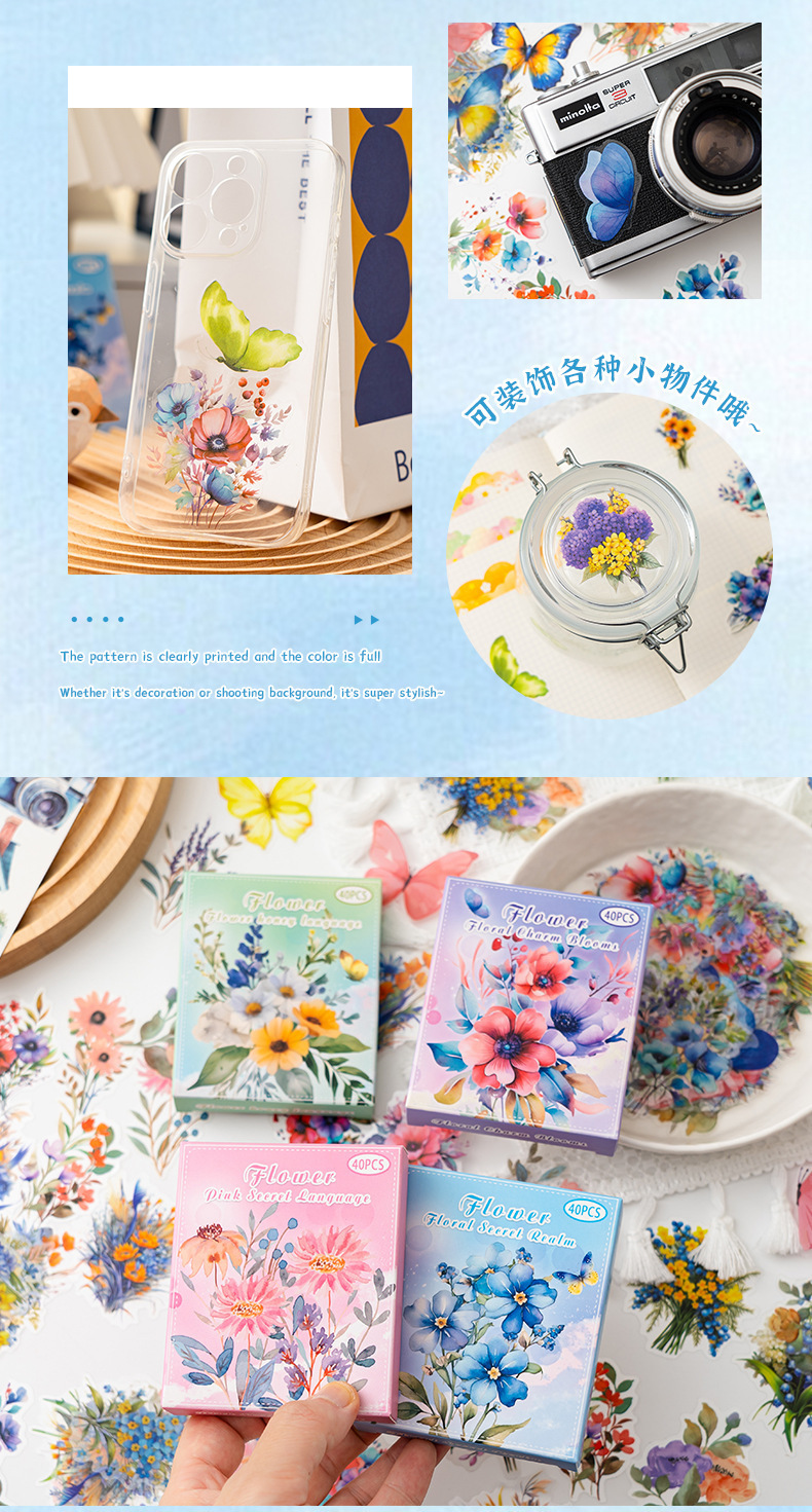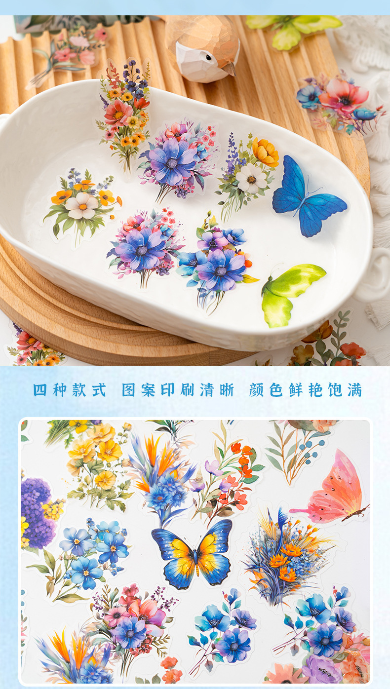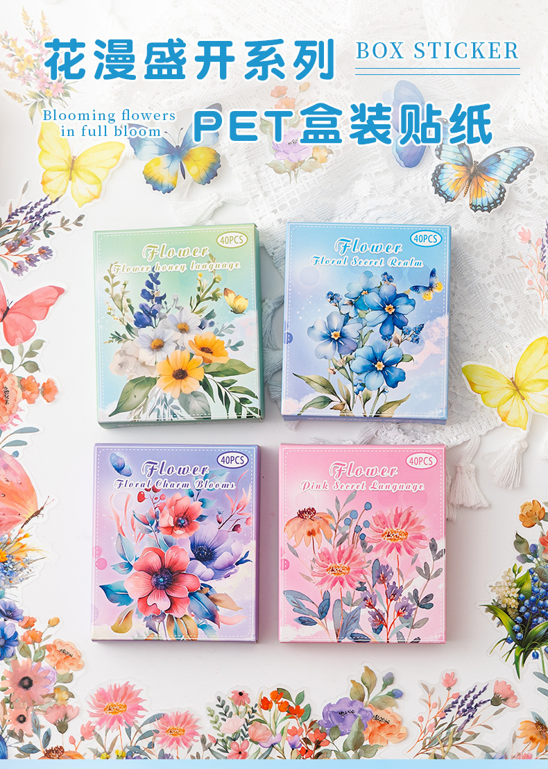 Pegatinas de mascotas en caja flores flores en florecimiento serie de decoración transfronteriza botánica floral material DIY pegatinas de botón