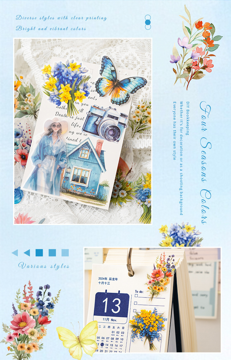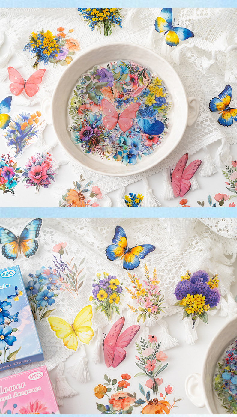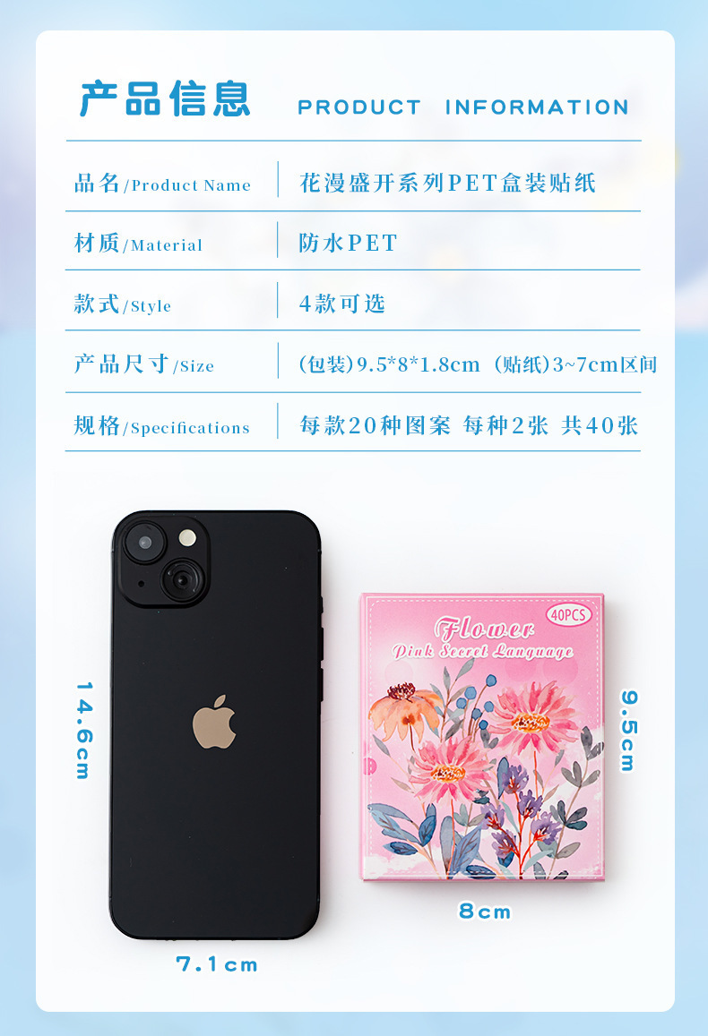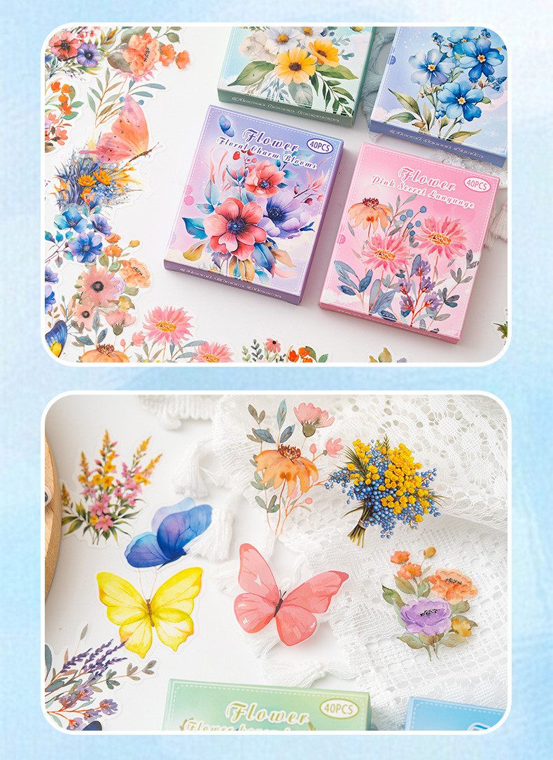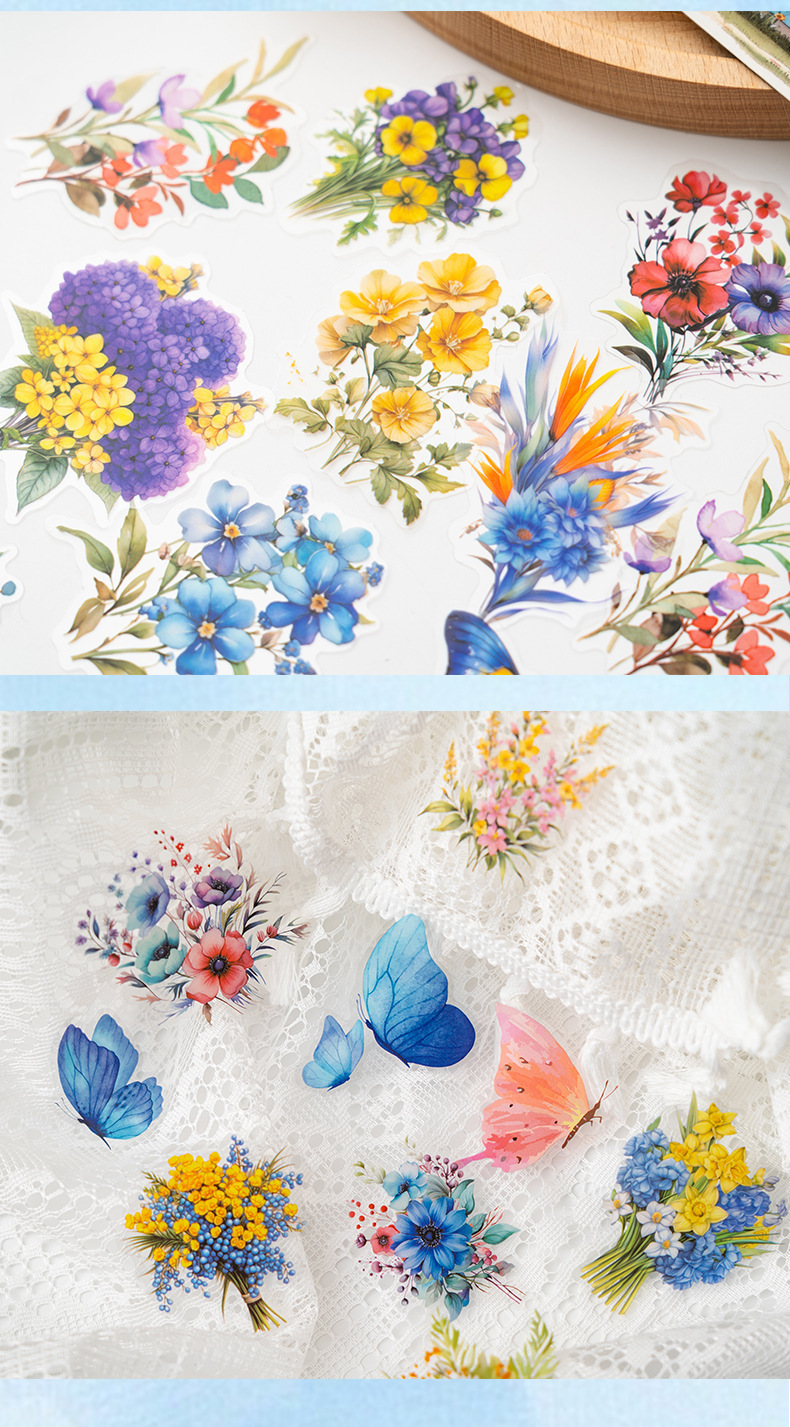 Pegatinas de mascotas en caja flores flores en florecimiento serie de decoración transfronteriza botánica floral material DIY pegatinas de botón