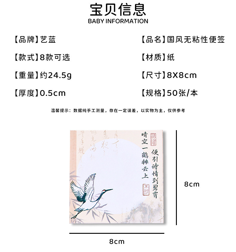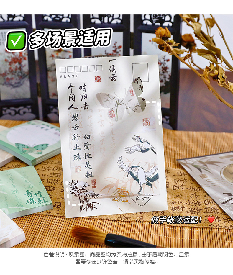 Materiales de estilo chino de notas de estilo antiguo papel de notas de alto valor no pegajoso nuevo estilo chino de estudiantes memorando cuentas de mano papel collage