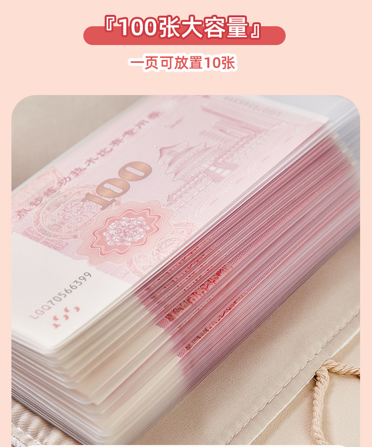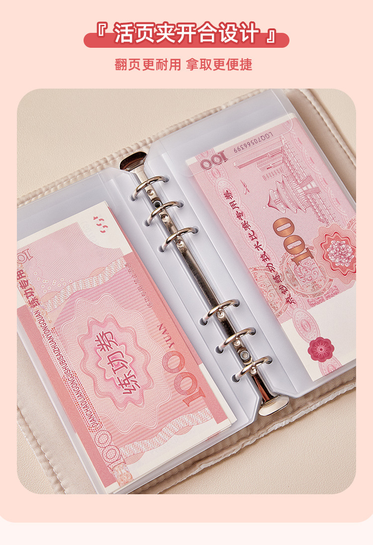 Libro de depósito en efectivo A6 tela de rosas Libro de almacenamiento de billetes conmemorativos de gran capacidad Libro de almacenamiento familiar Folleto de hojas sueltas extraíble
