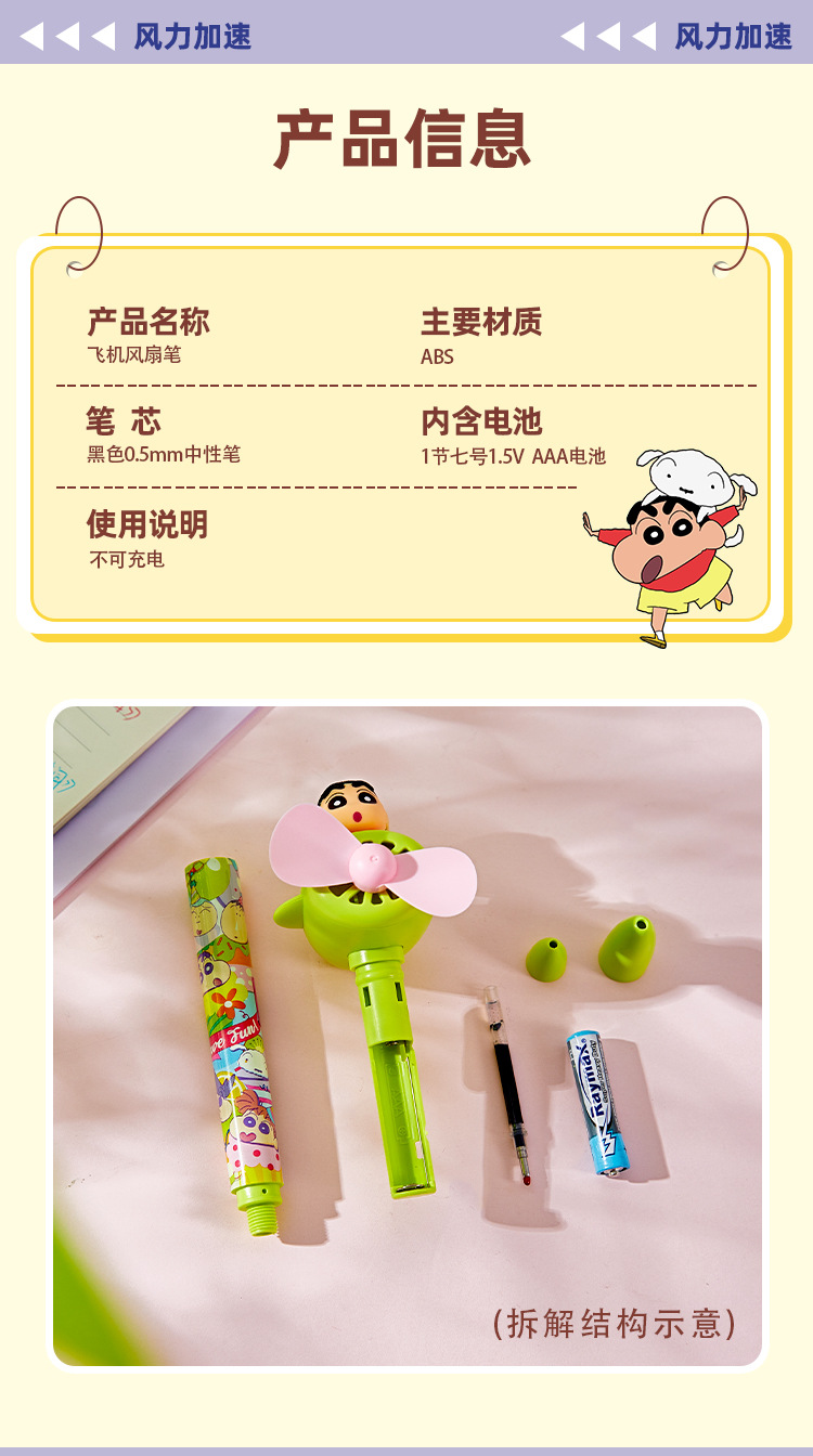 Flying Little Police Avión Silent Little Fan Pen Series Cute Cartoon Crayon Shin-chan Creatividad multifuncional para estudiantes
