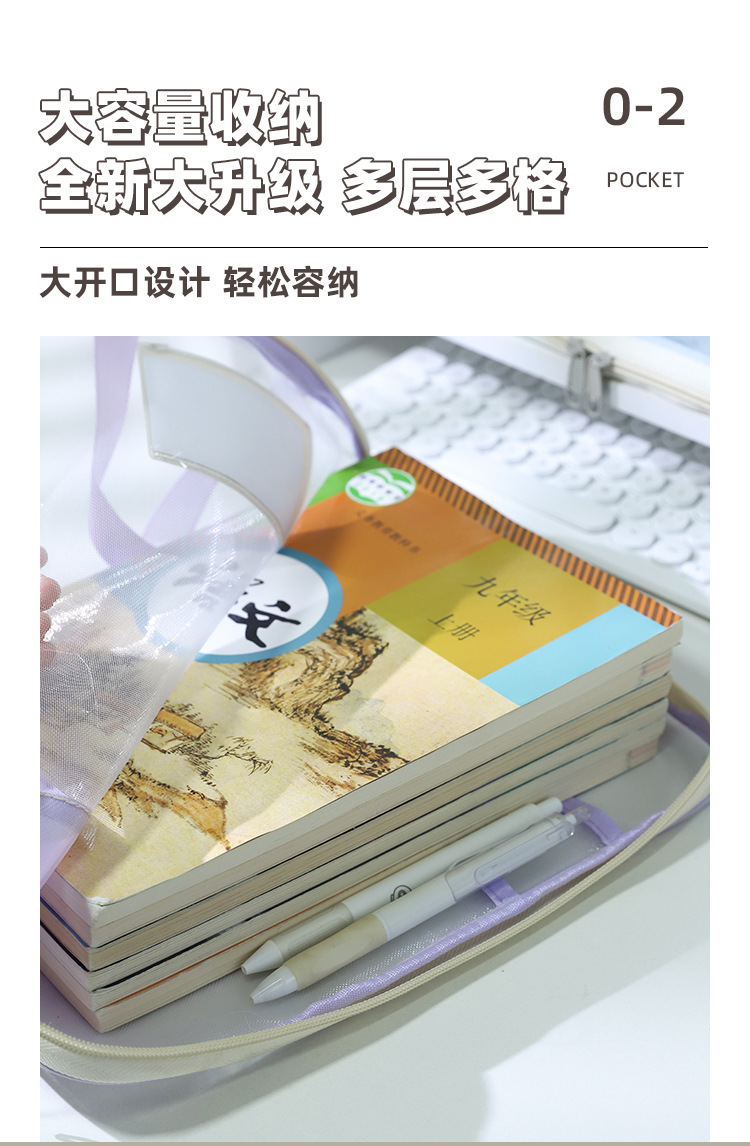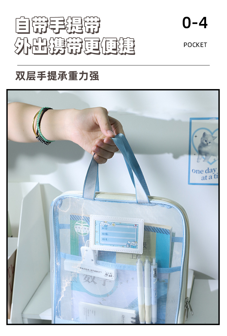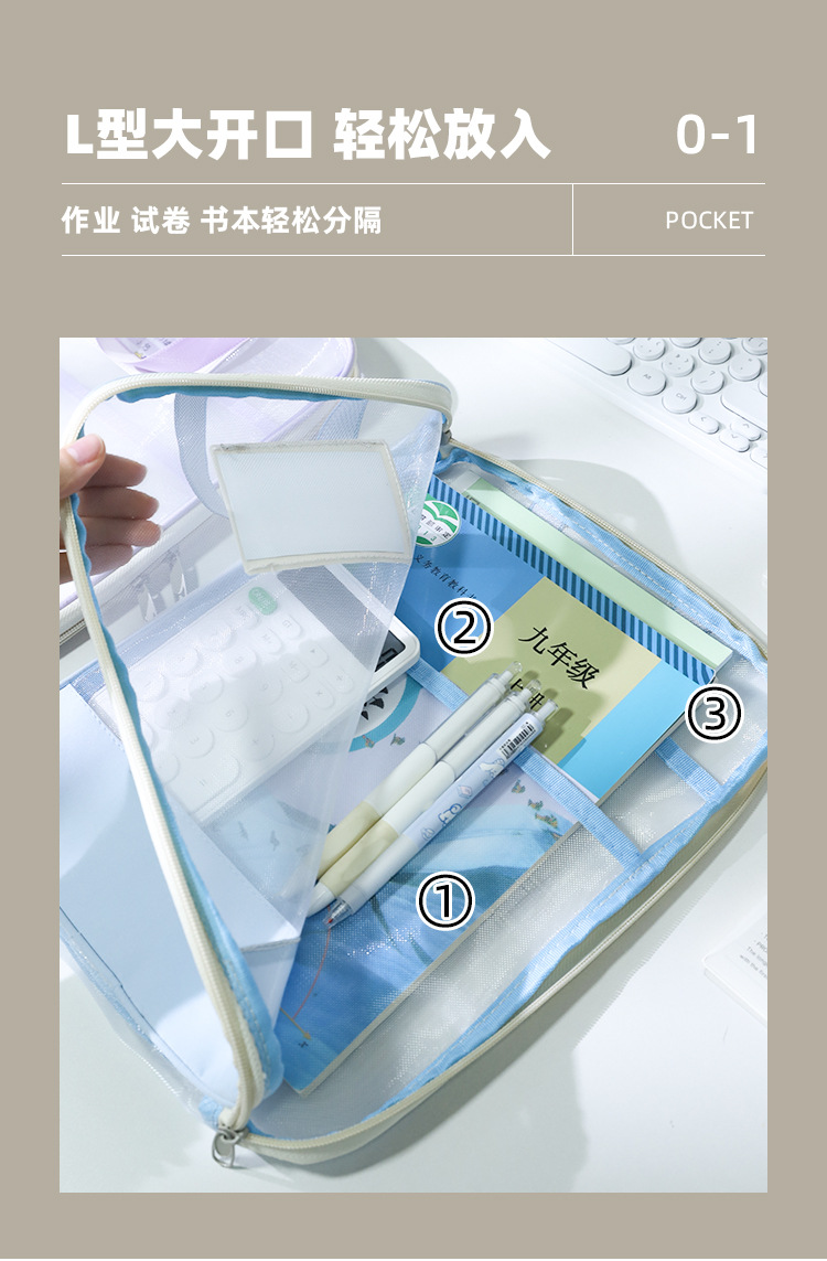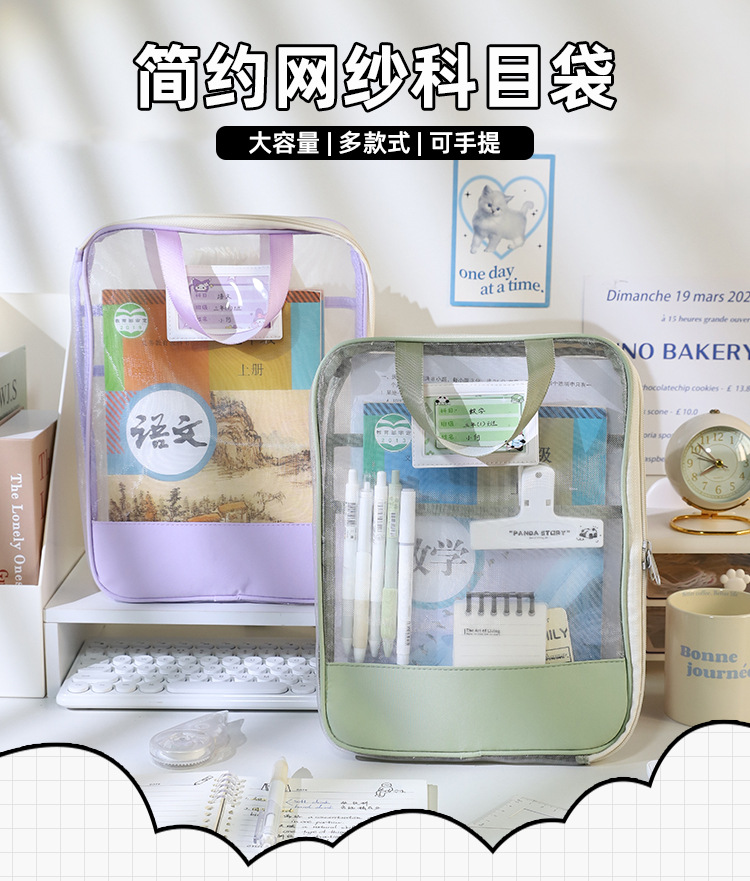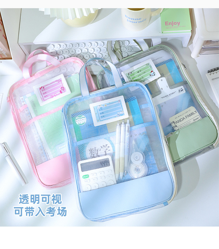 Bolsa de sujeción en forma de L gruesa gran apertura bolsa de archivo transparente de examen bolsa de mano de hilo de malla para almacenar papeles de examen de estudiantes