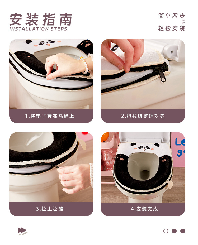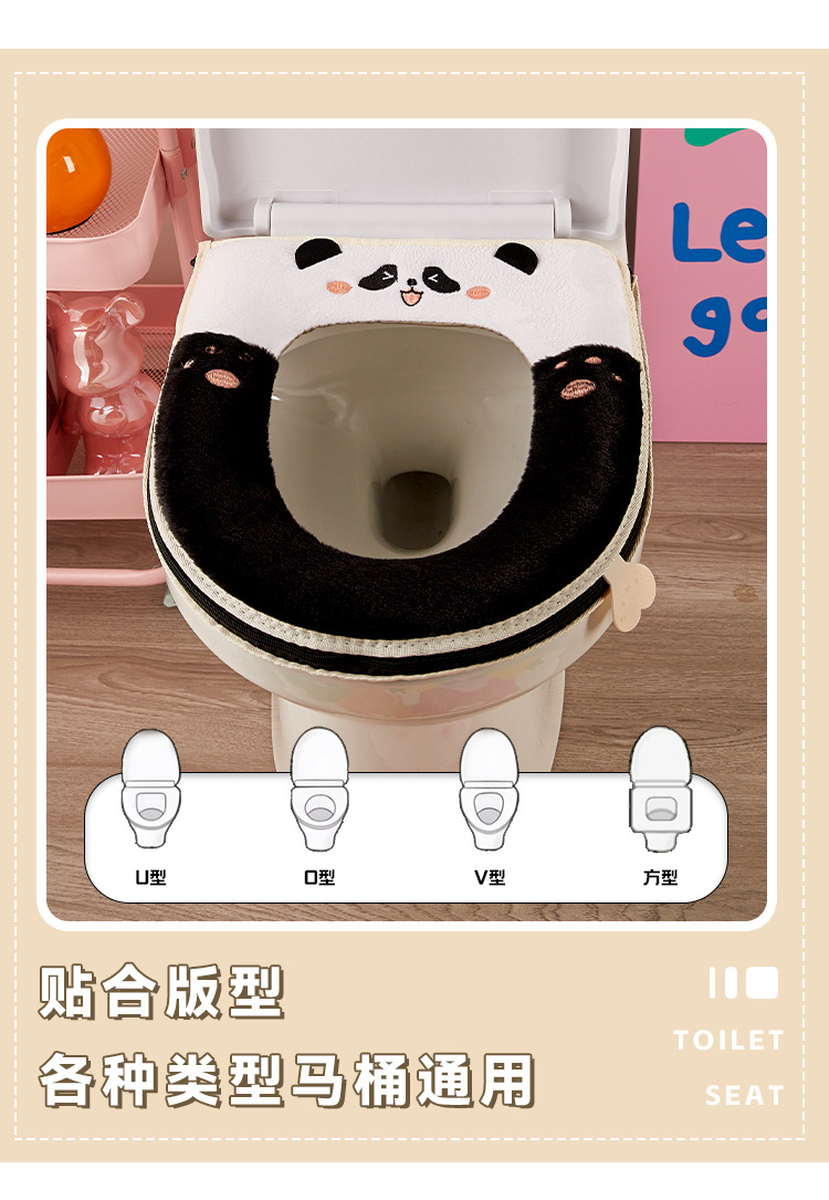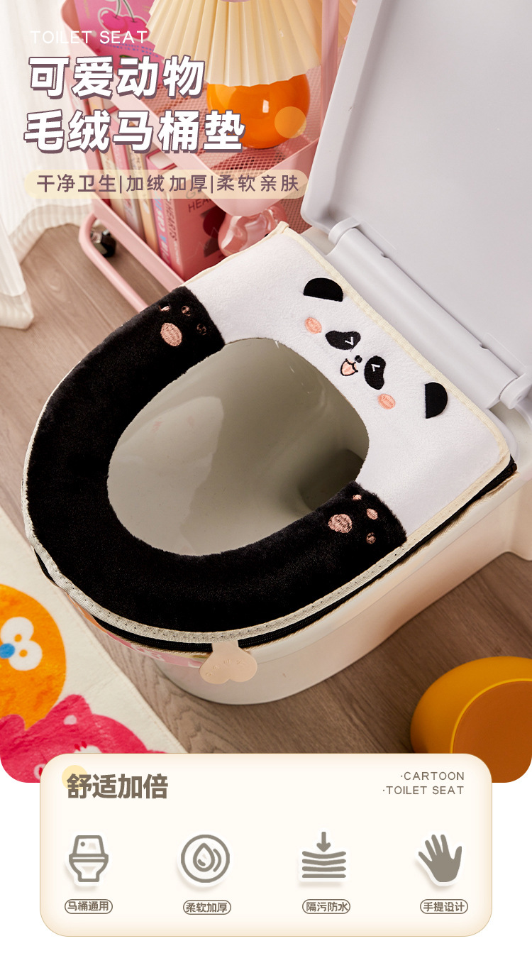Cojín de inodoro de felpa de dibujos animados Cute Panda Home Cojín de inodoro impermeable Cojín de inodoro universal Four Seasons