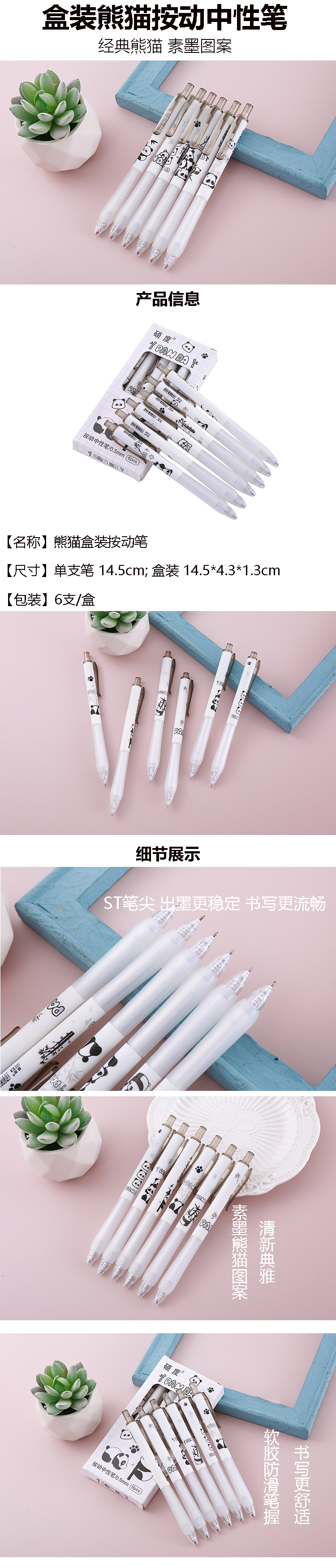 Bolígrafo de prensa de caja de panda de tinta simple, papelería creativa, herramienta de escritura para estudiantes, bolígrafo de góner, bolígrafo de firma a base de agua para oficina
