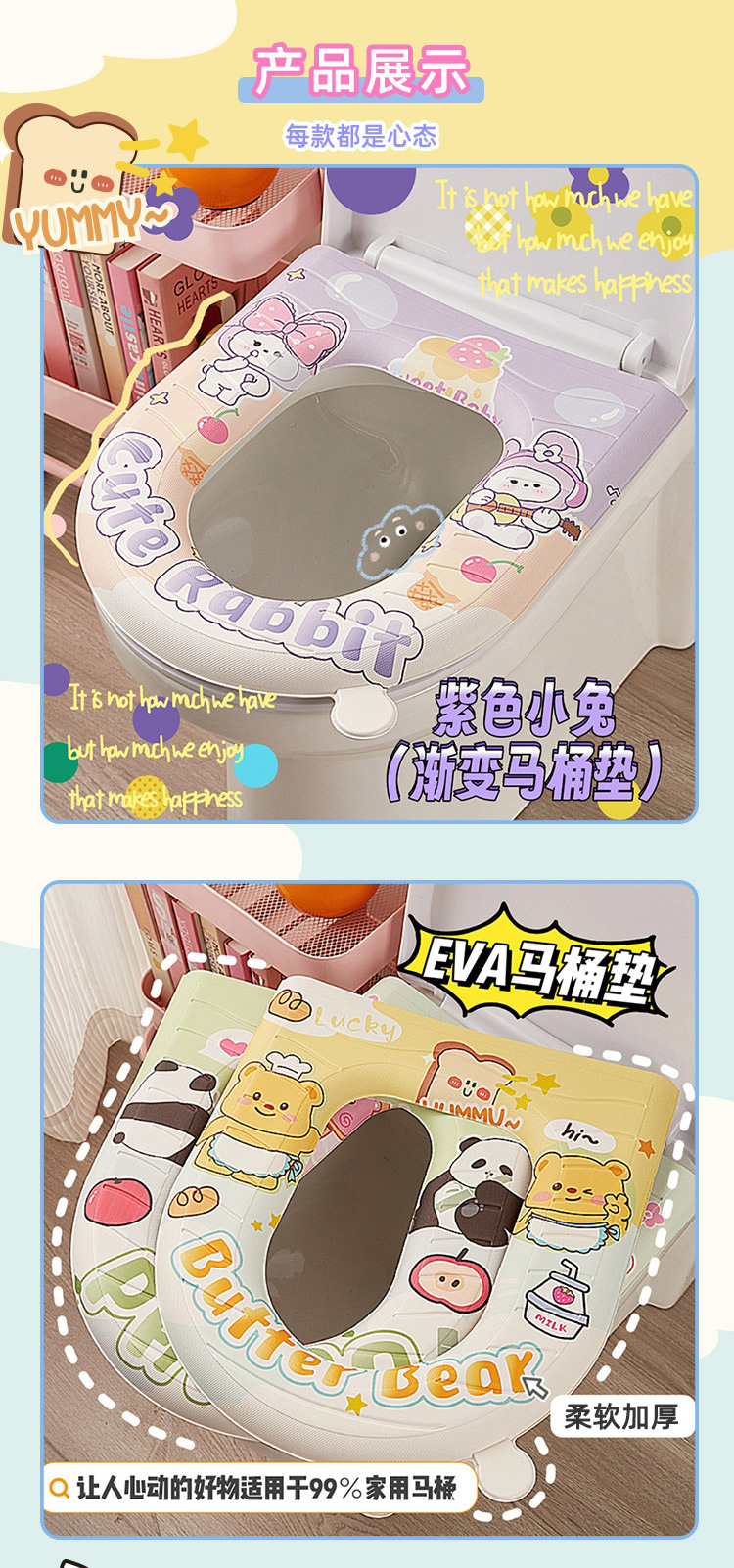 Nuevo cojín de inodoro gradiente lindo dibujos animados cojín de inodoro EVA cuatro estaciones general lavable cojín de inodoro doméstico