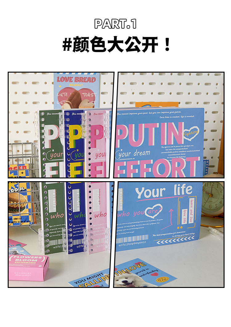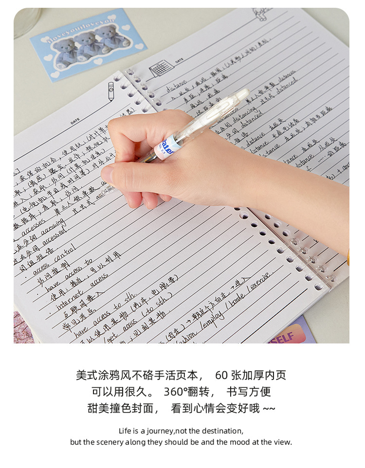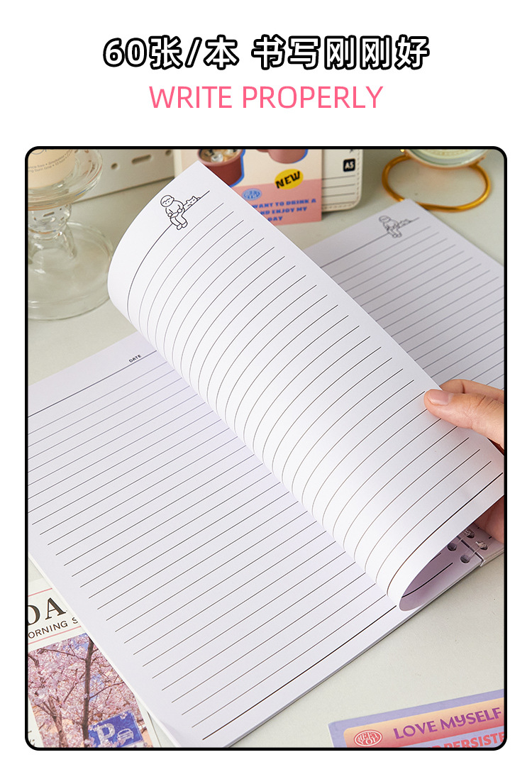 | Colores | A5-Easy,A5-Galaxy,A5-pensamientos privados,B5-Easy,B5-Galaxy,A5-conejillo de indias rosa,A5-conejillo de indias verde,A5-conejillo de indias púrpura,A5-Starlight,A5-Hola astronauta,A5-Feliz cumpleaños,A5-Larga vida a las vacaciones,A5-Biye juntos,A5-Calle de comida,B5-Feliz cumpleaños,B5-Larga vida a las vacaciones,B5-Biye juntos,B5-Camping juntos |