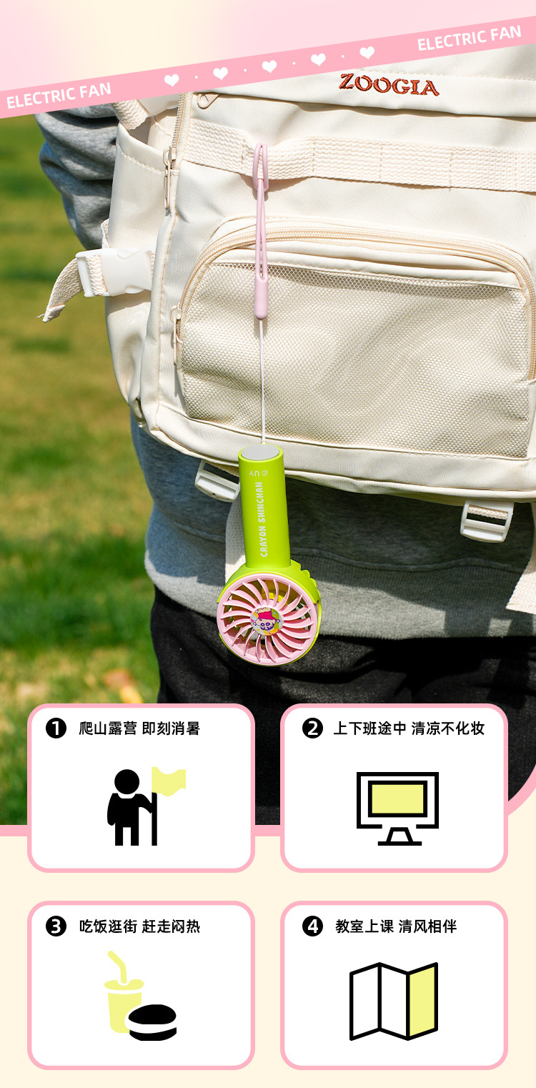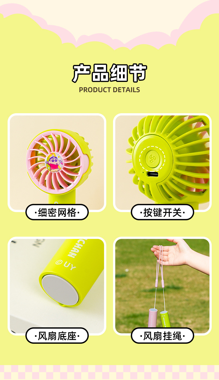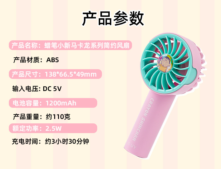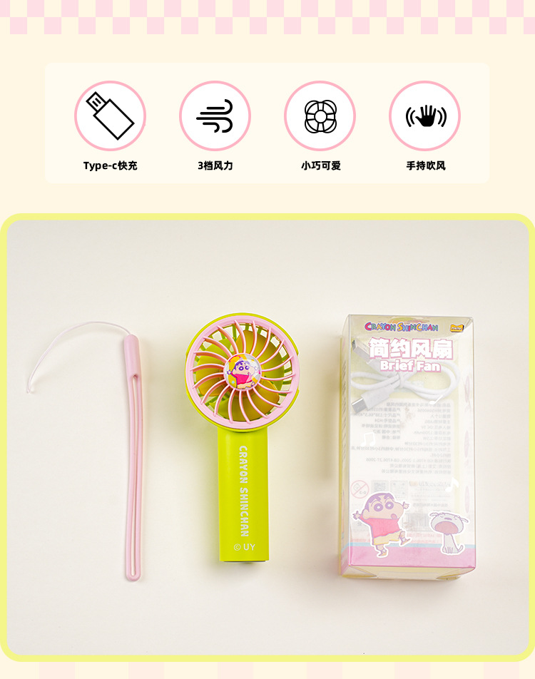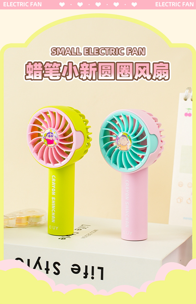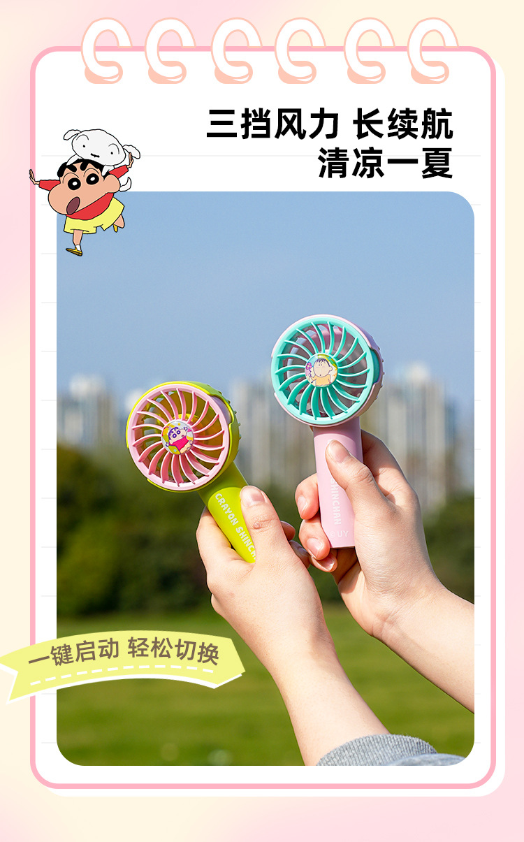Crayon Shin-chan Macaron Series Pluma para ventilador de avión Estudiante de verano de escritorio portátil Carga USB eléctrica