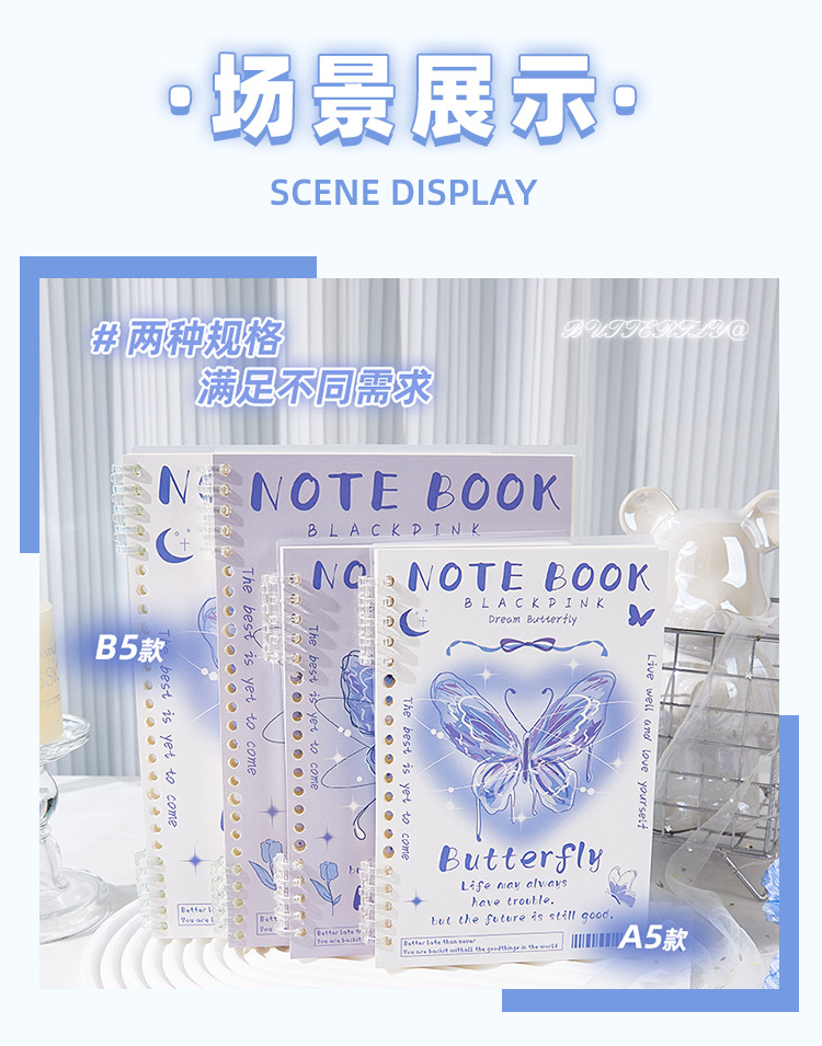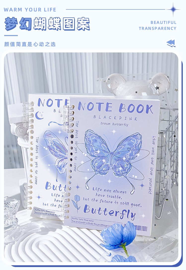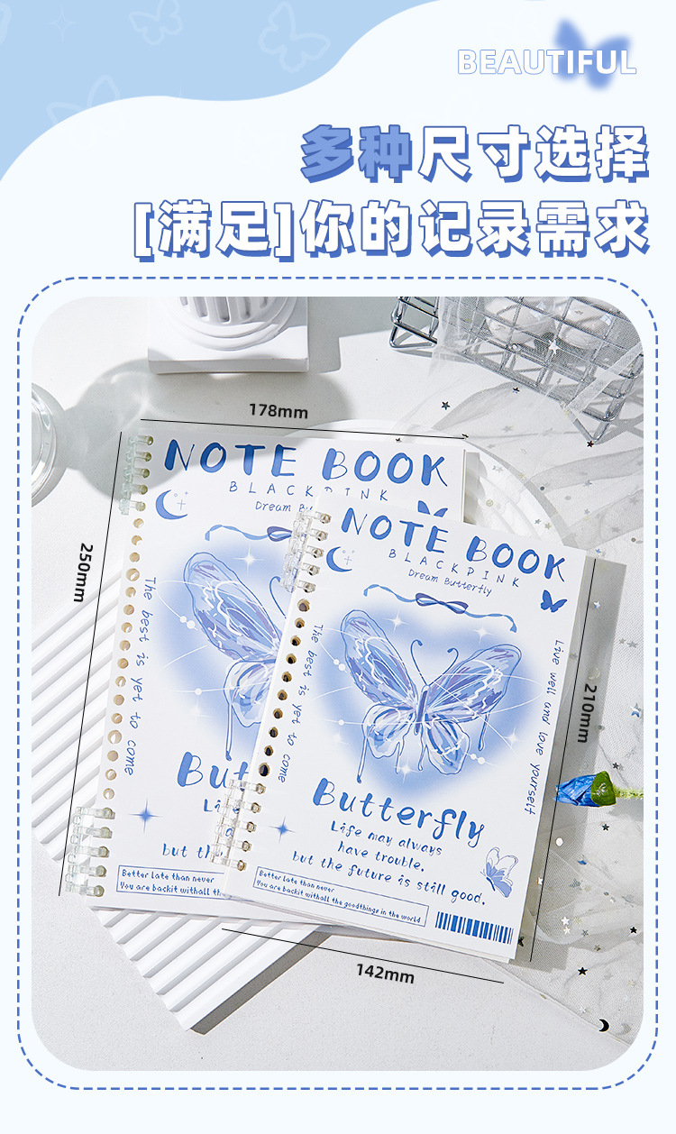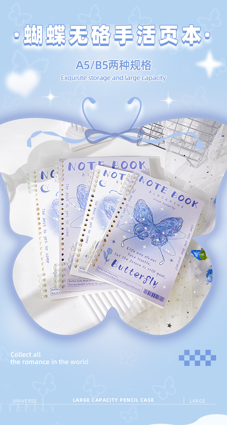 Mariposa A5 de alto valor de la cara de las niñas desmontable engrosado cuaderno de notas de línea horizontal no se agarra