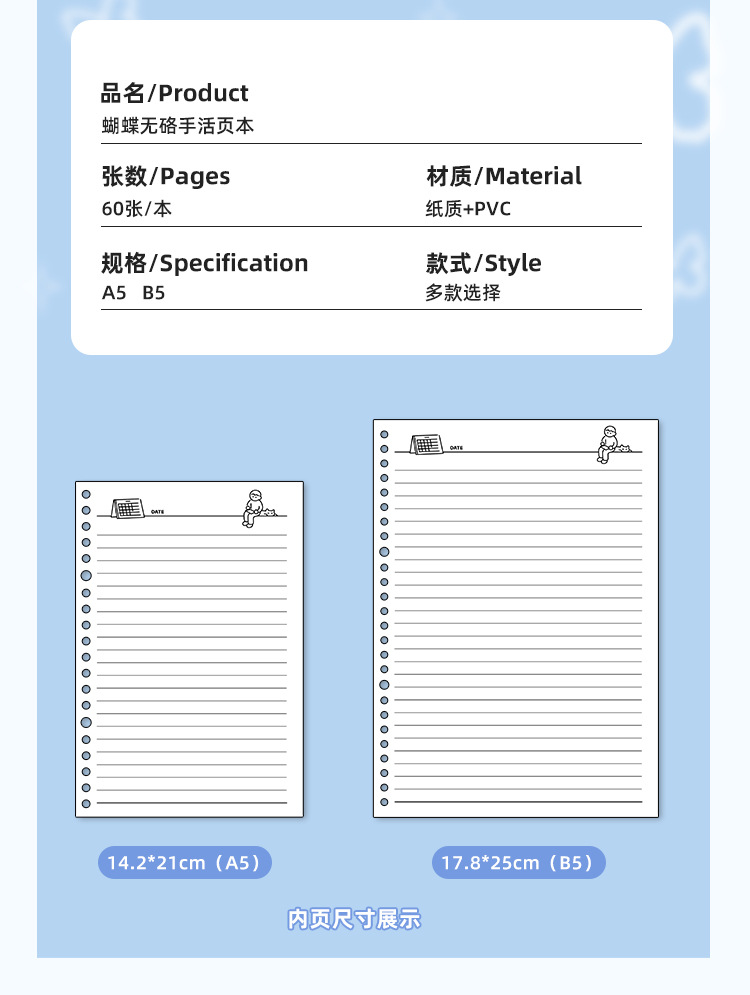 | Número de artículo | Mariposa A5 libro de hojas sueltas |