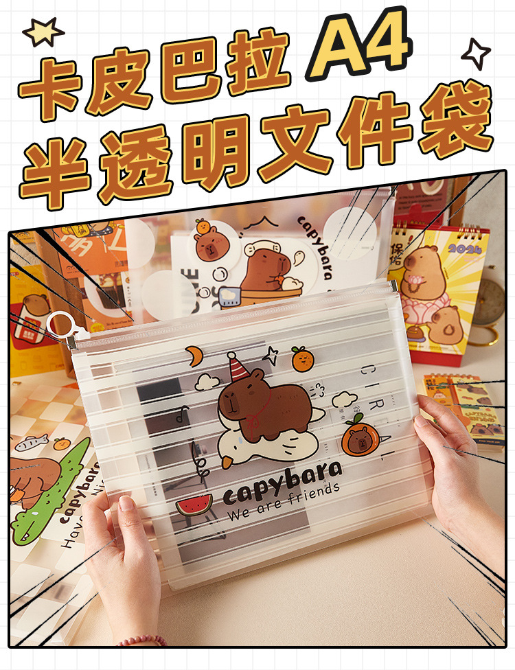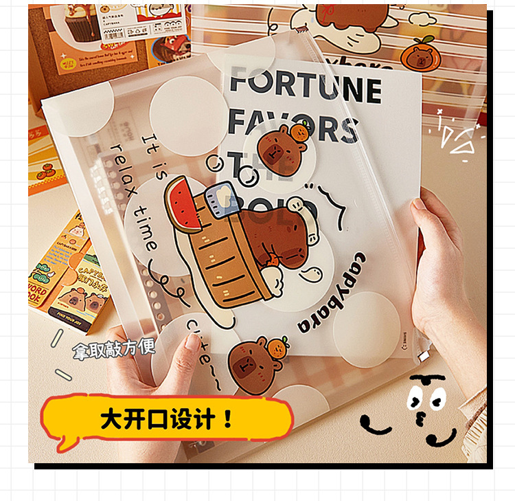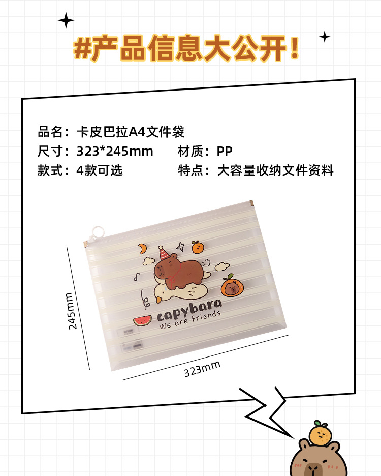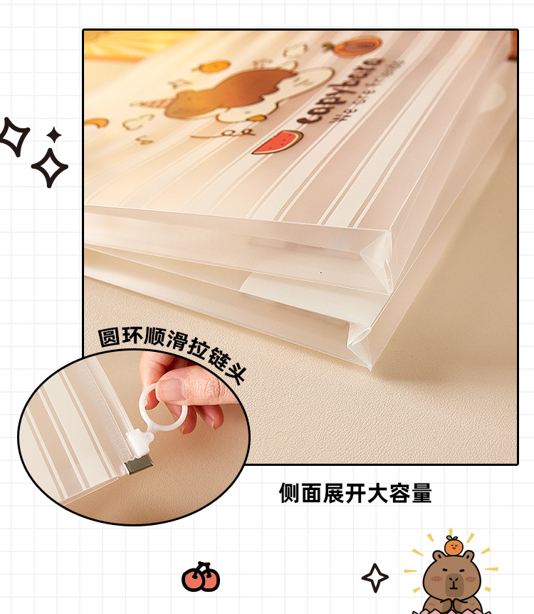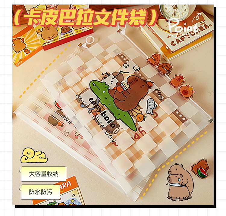Bolsa de archivo de capibara Bolsa de borde portátil Kapibala Bolsa de papel con cremallera A4 Bolsa de información pp de gran capacidad de almacenamiento