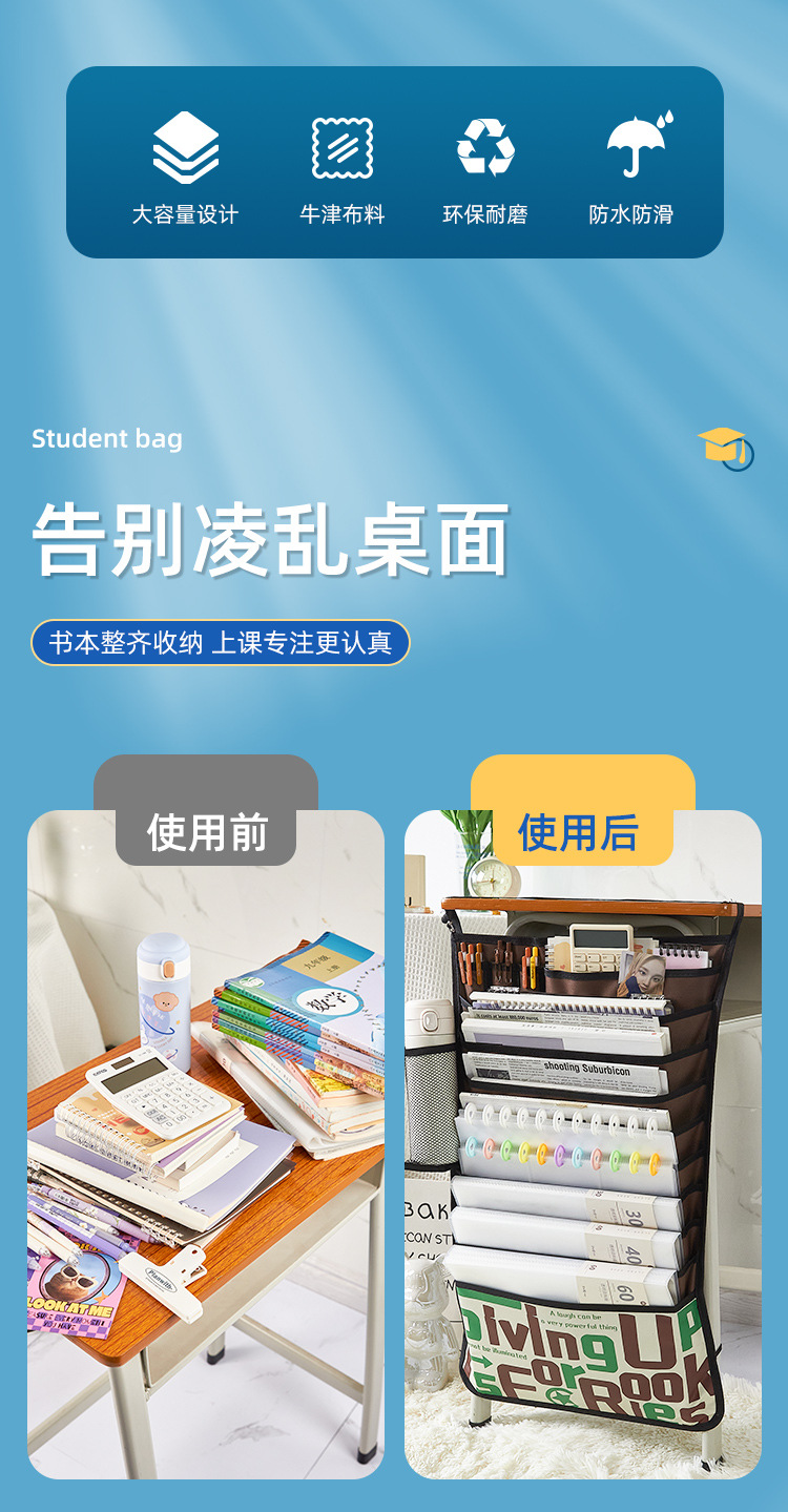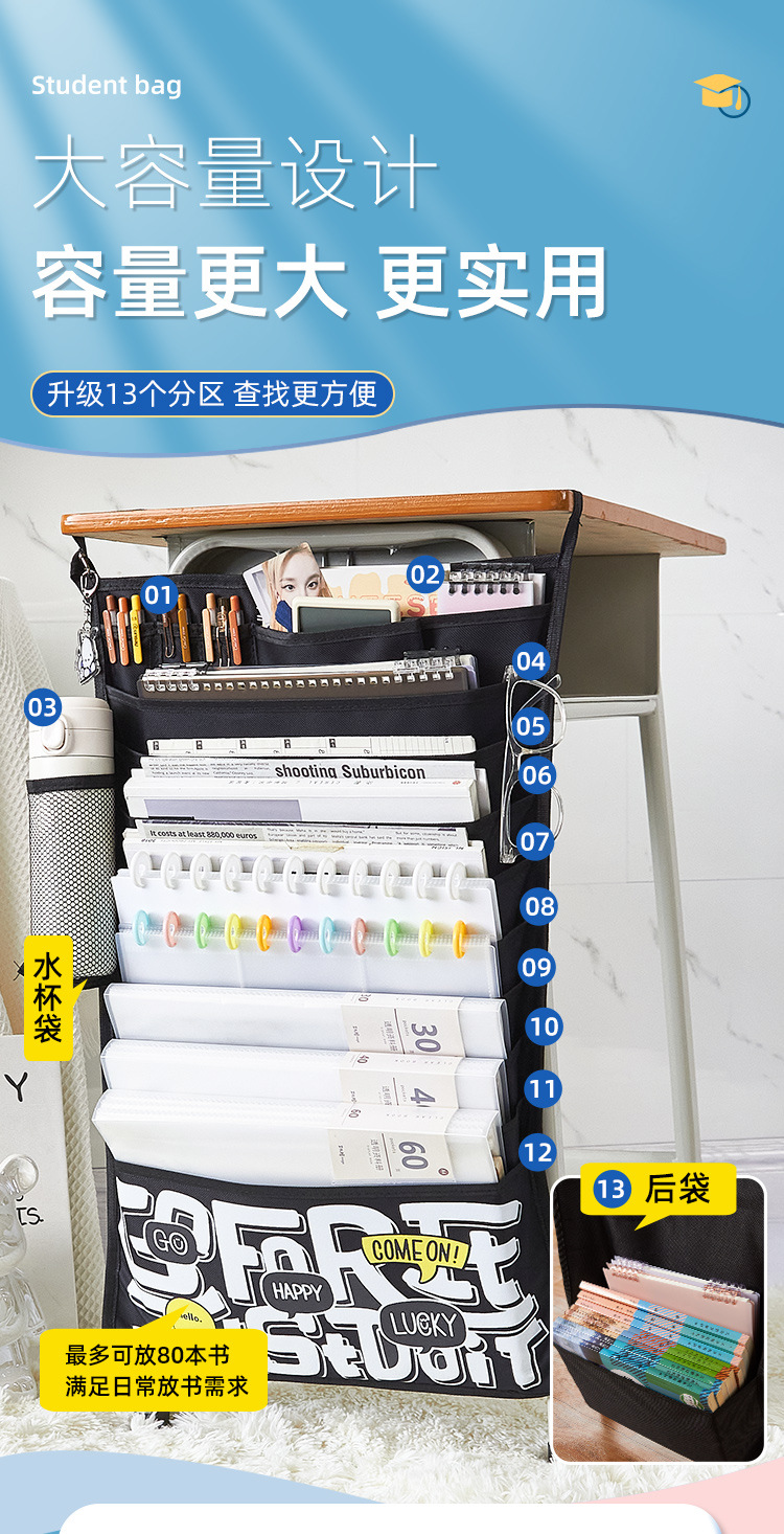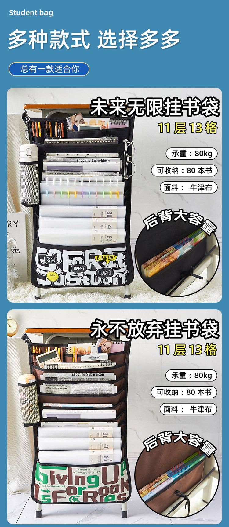 Futuro ilimitado de 11 capas colgando bolsa de libro escritorio artefacto bolsa de libro estudiante de almacenamiento de escritorio colgando bolsa de libro de gran capacidad bolsa colgante