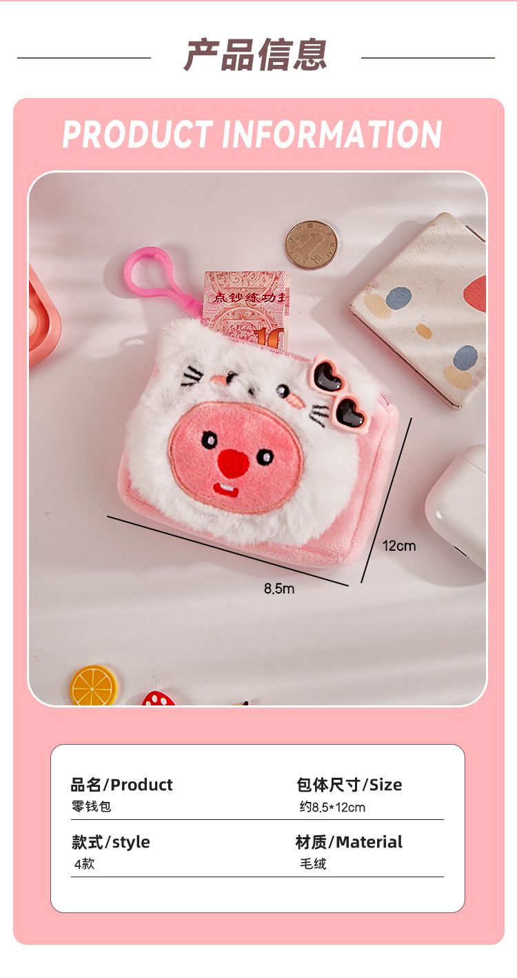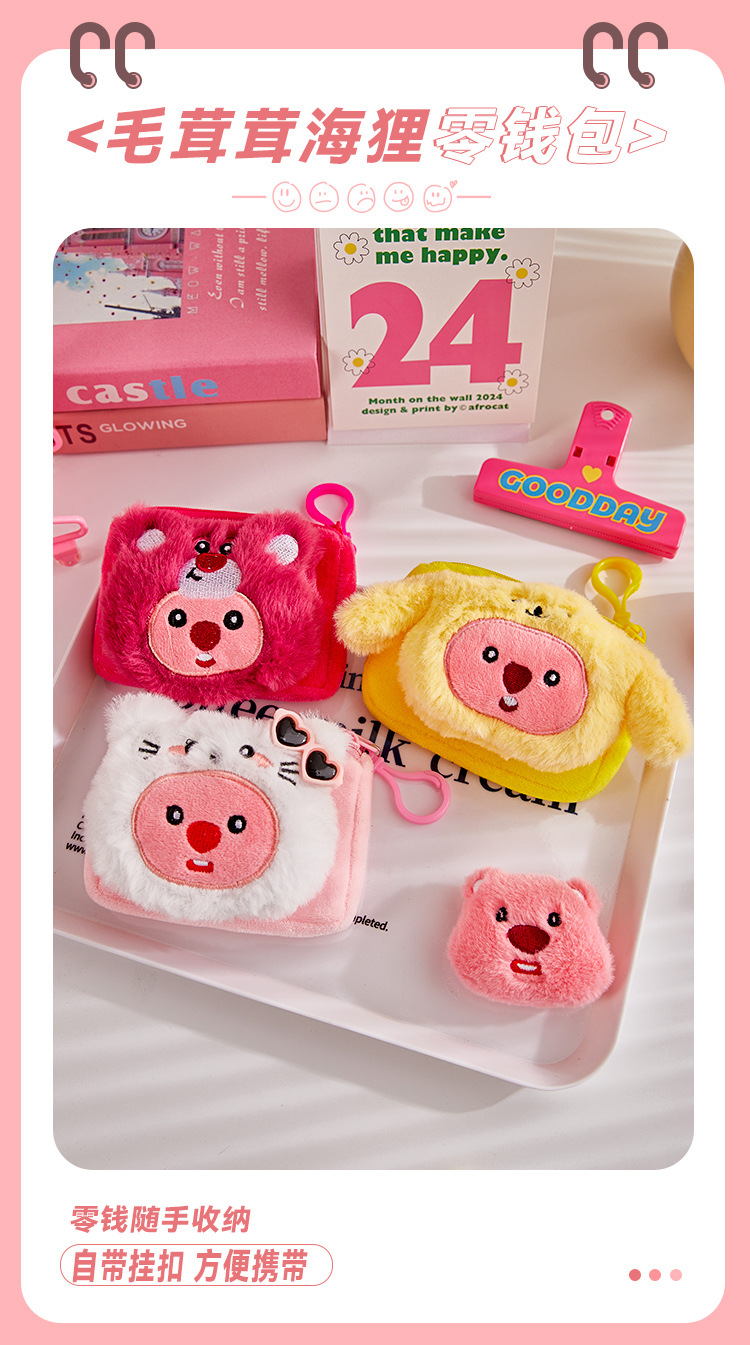 Cute Little Beaver Monedero Bolso de maquillaje portátil para niñas Muñeca de felpa Mochila escolar Colgante Bolso para auriculares de almacenamiento portátil