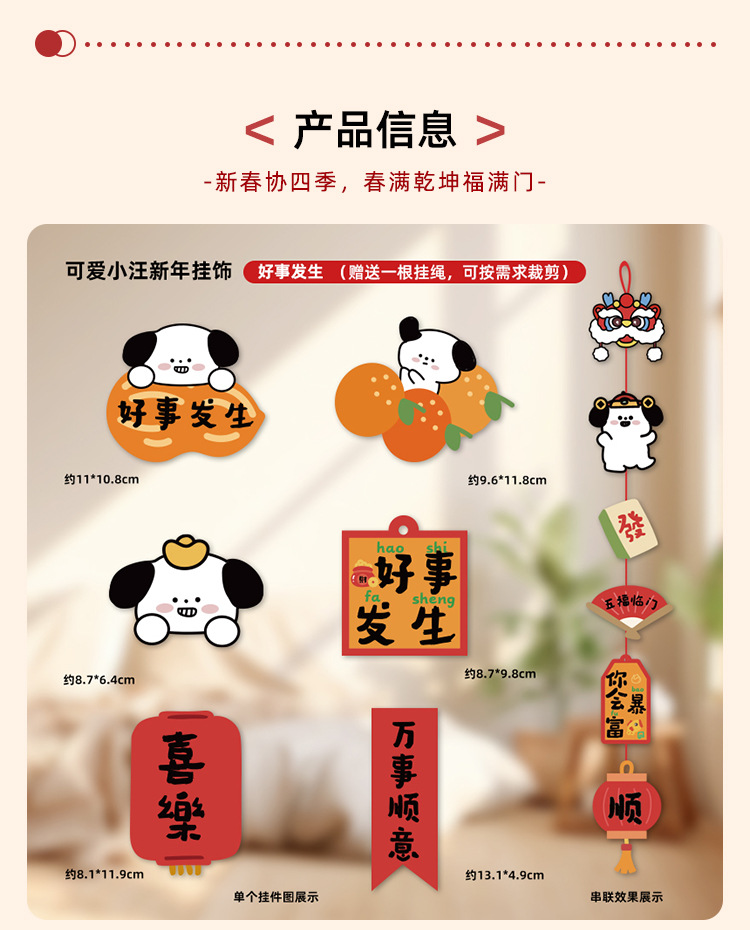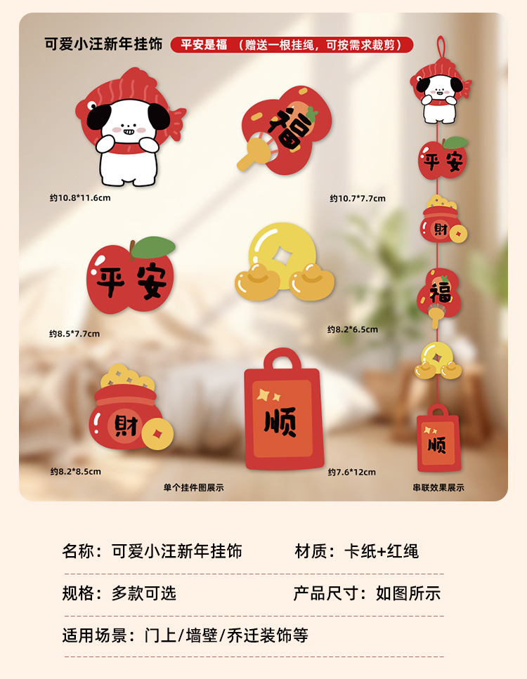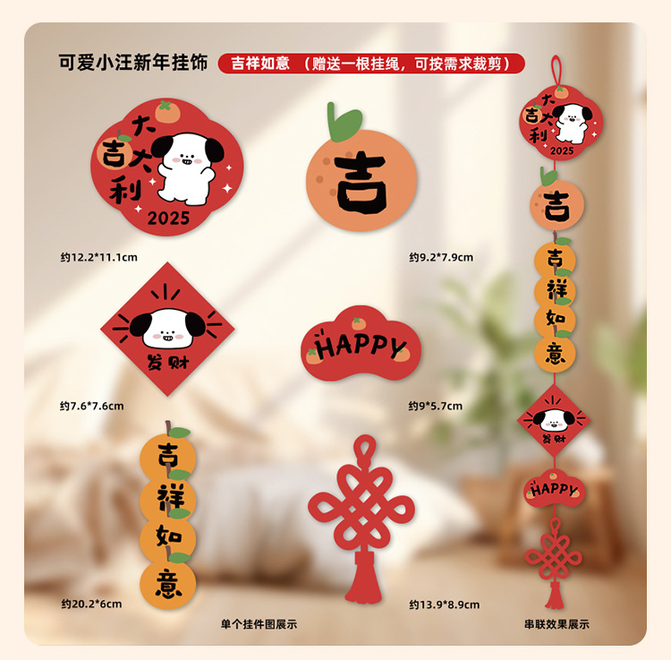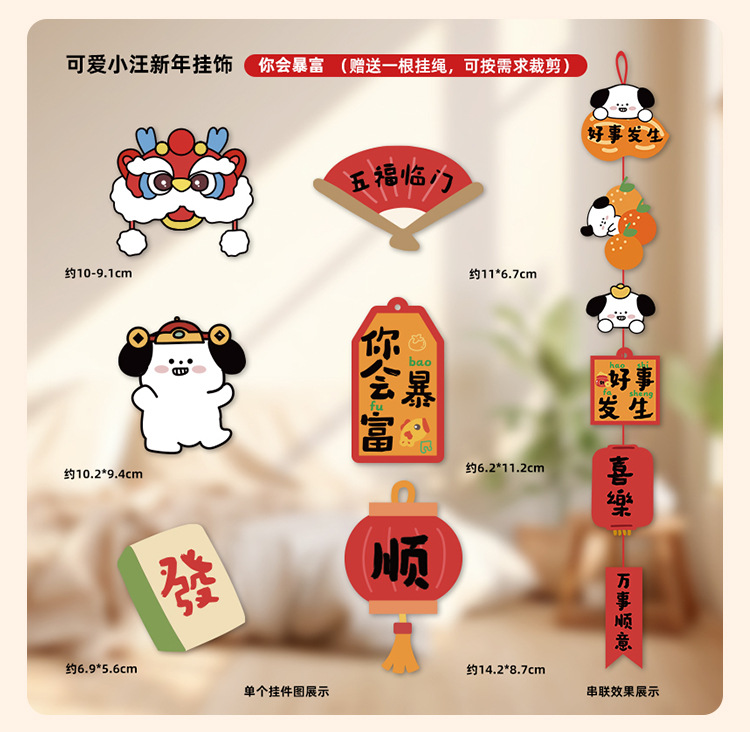 Perro adorable 2025 decoración de Año Nuevo multi-escena colgante festivo del Festival de Primavera pequeño colgante de mudanza de decoración de Año Nuevo