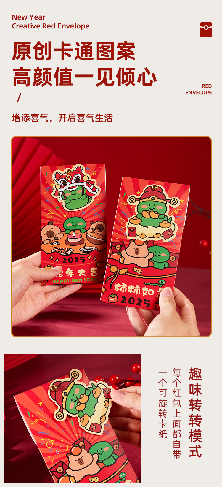 Original 2025 sobre rojo de dibujos animados de Año Nuevo puerta giratoria es un regalo de bendición del Festival de Primavera, billetera de Año Nuevo creativa
