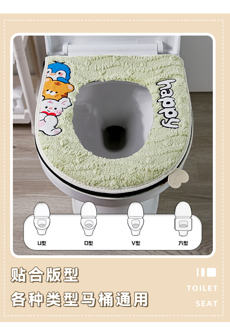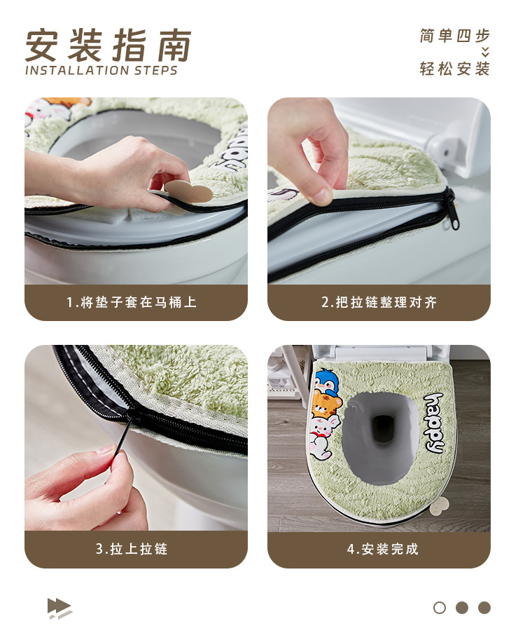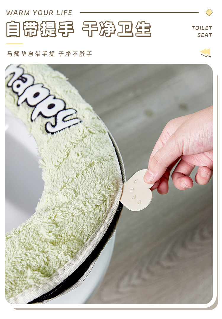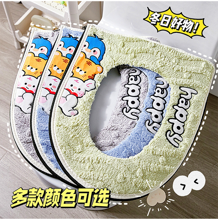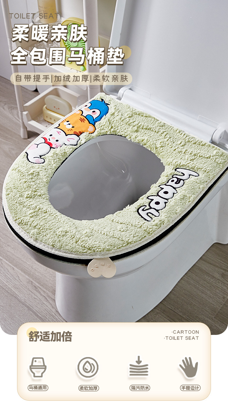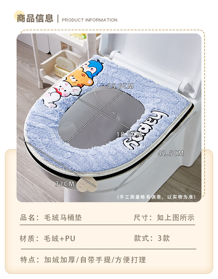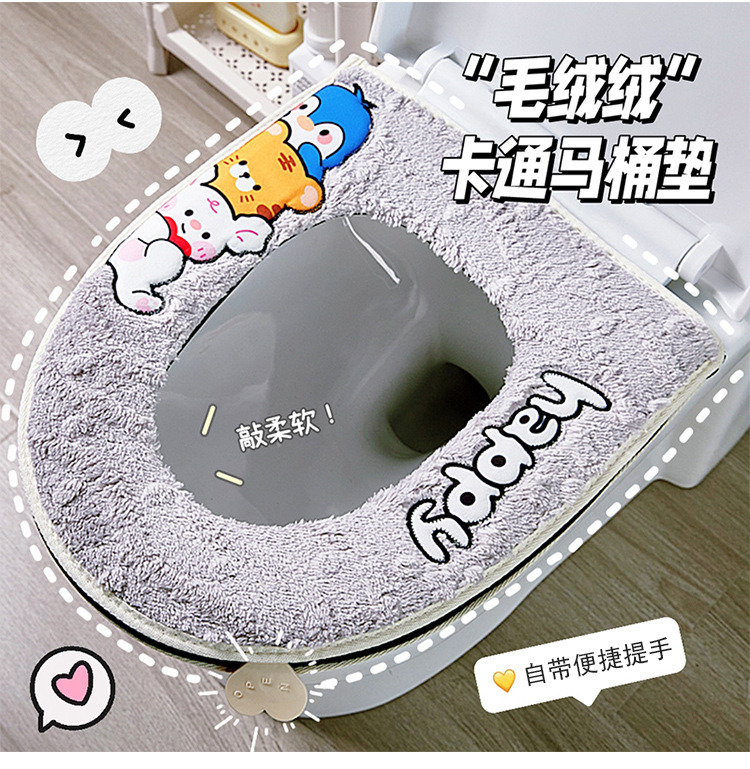 Cojín de inodoro otoño invierno espesar cojín de inodoro de peluche doméstico no se pierde el pelo tipo cremallera caricatura encantadora cubierta de inodoro suave