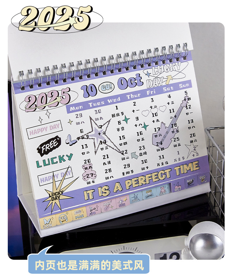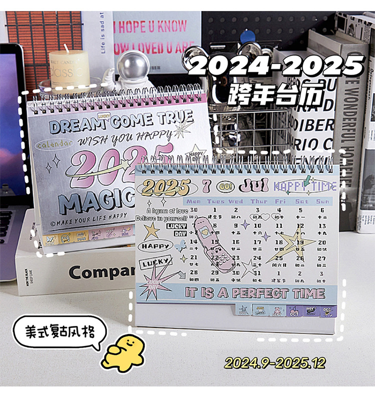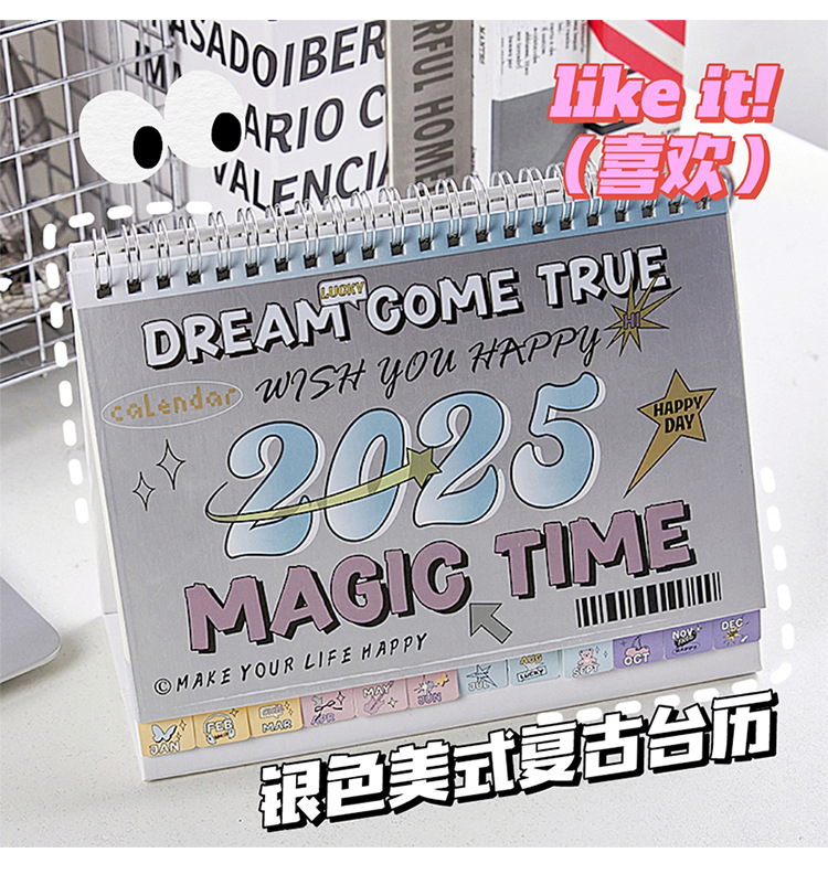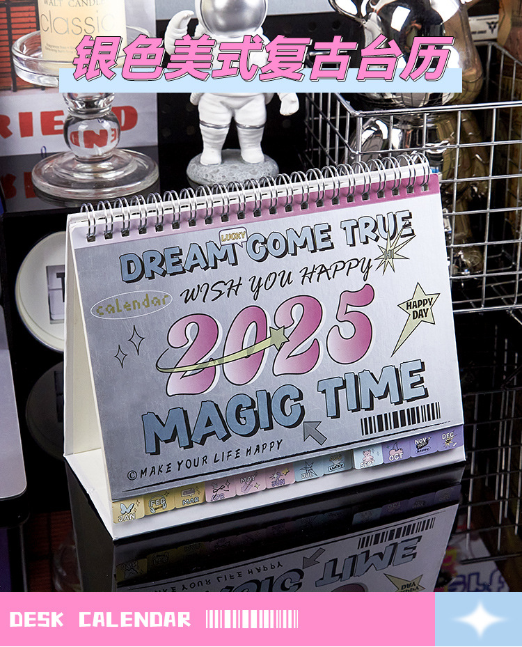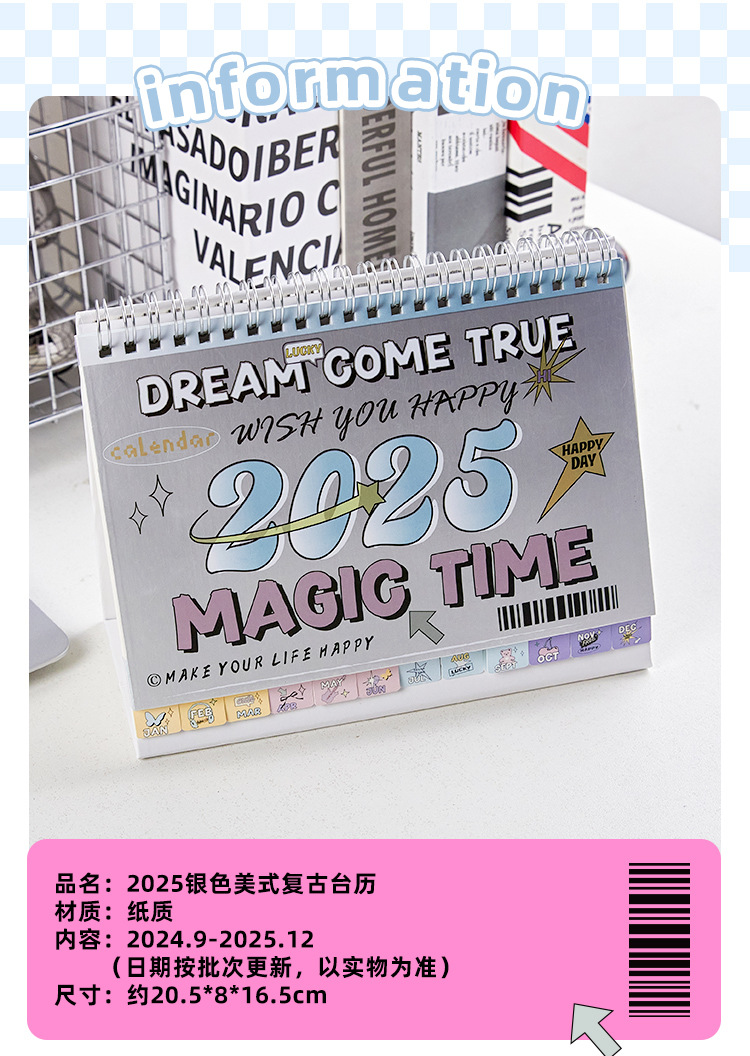 Calendario de escritorio retro americano plateado 2025 calendario de bobina creativo de alto valor de oficina adornos de escritorio