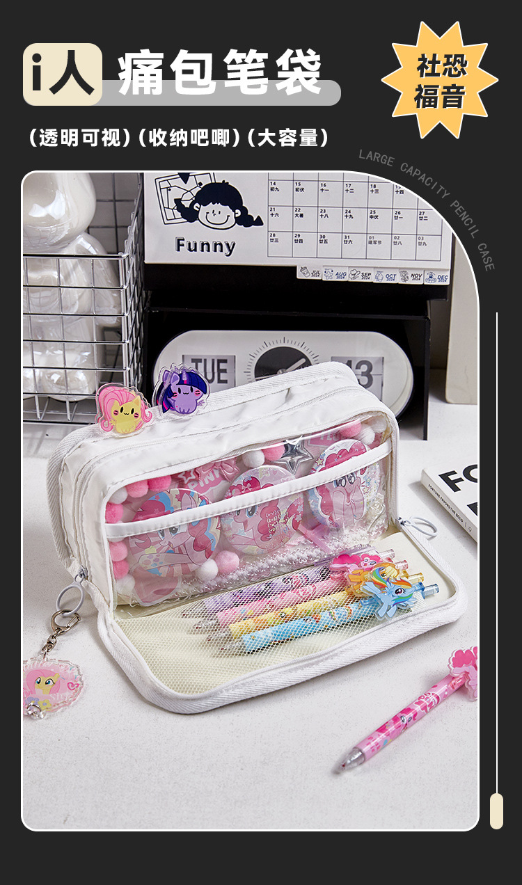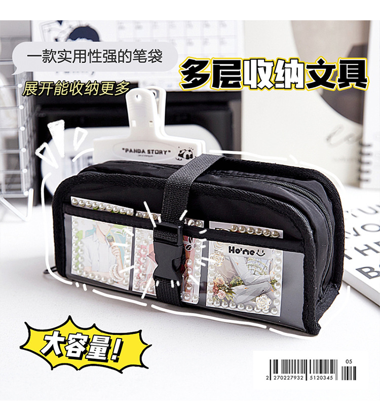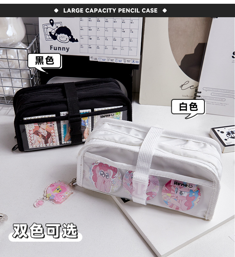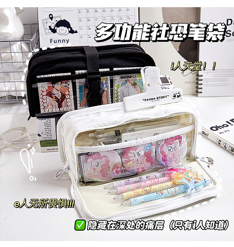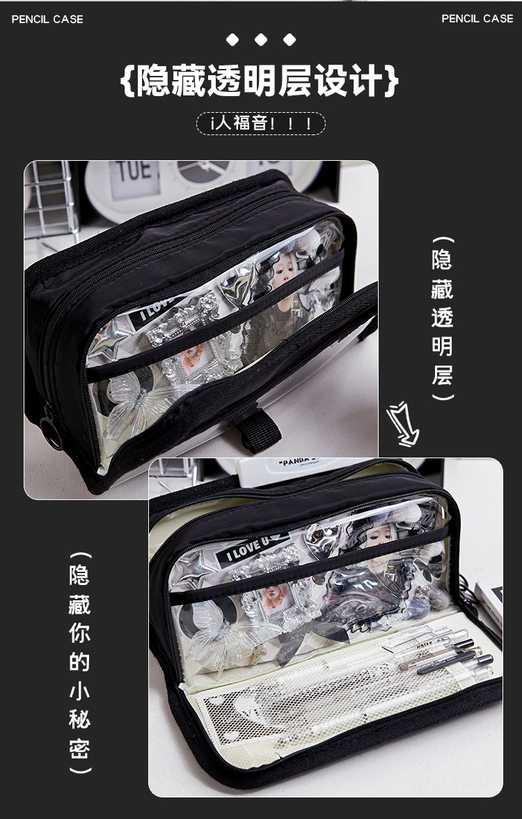 Bolsa de lápices de almacenamiento multicapa de gran capacidad para estudiantes, sándwich transparente simple, multifuncional i, bolsa de dolor humano, bolsa de lápices, bolsa de papelería