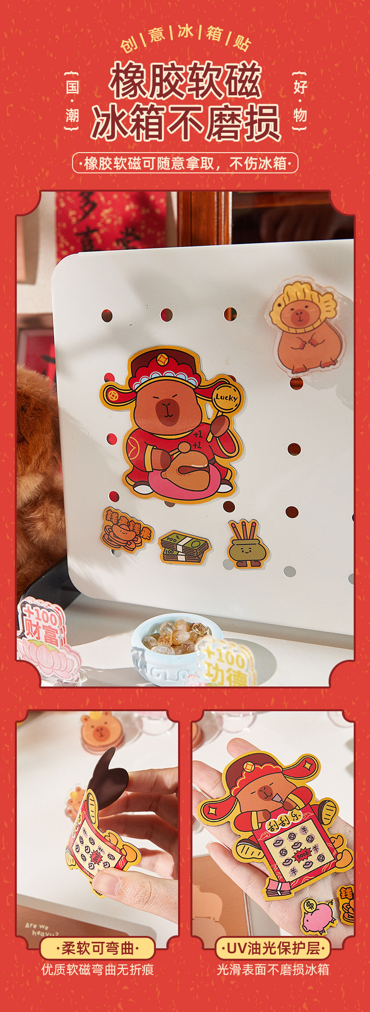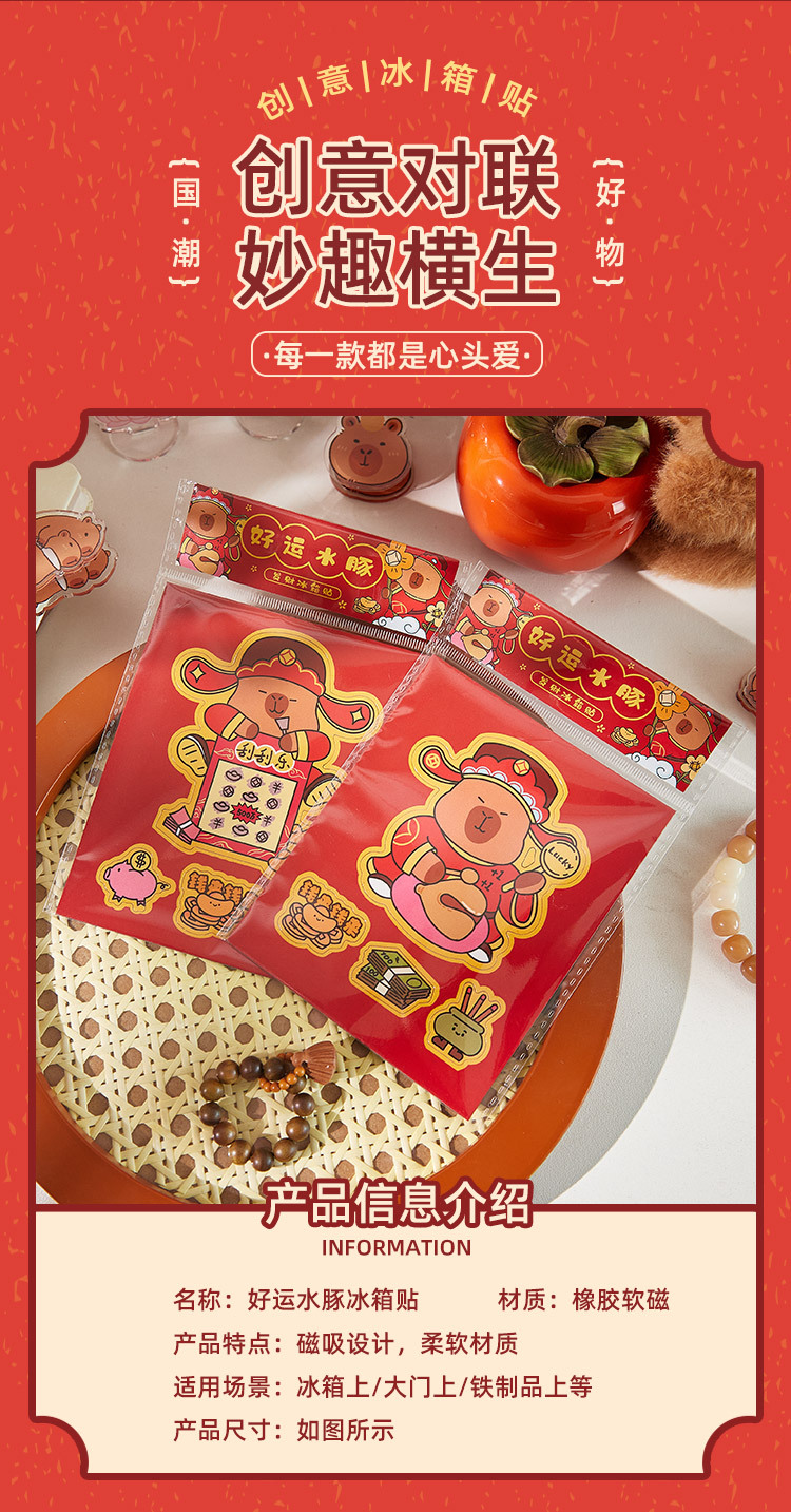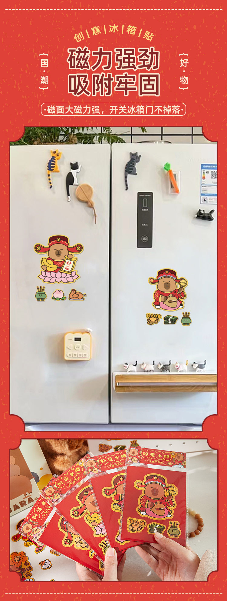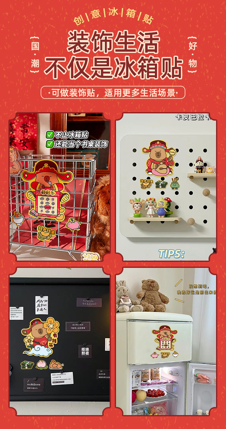 2024 Nuevo capabala refrigerador pegatinas de dibujos animados Capibara refrigerador pegatinas creativo Año Nuevo magnético pegatinas decorativas