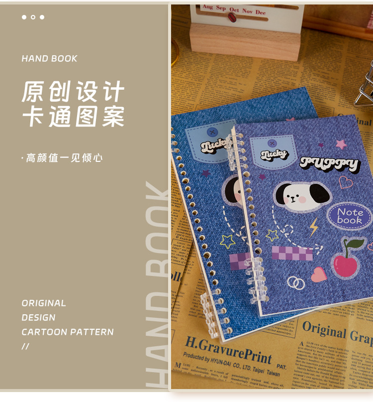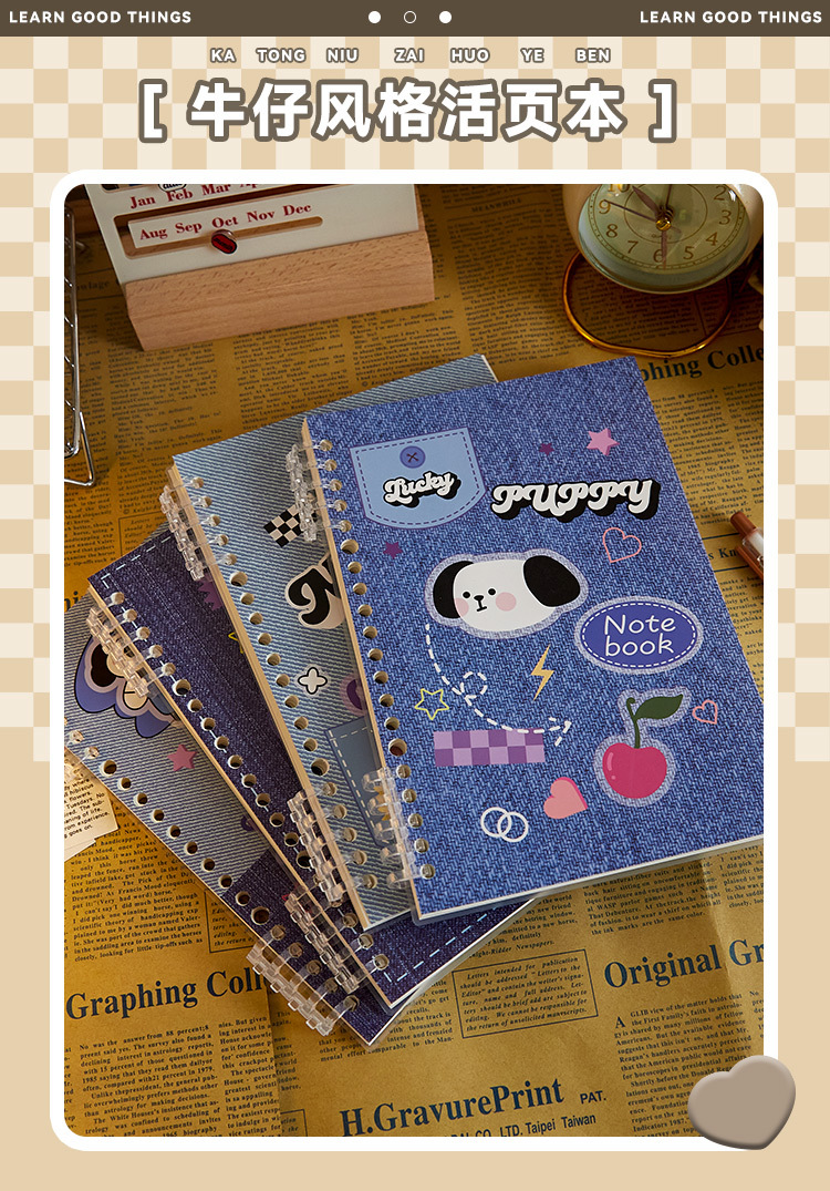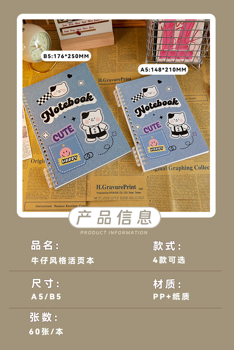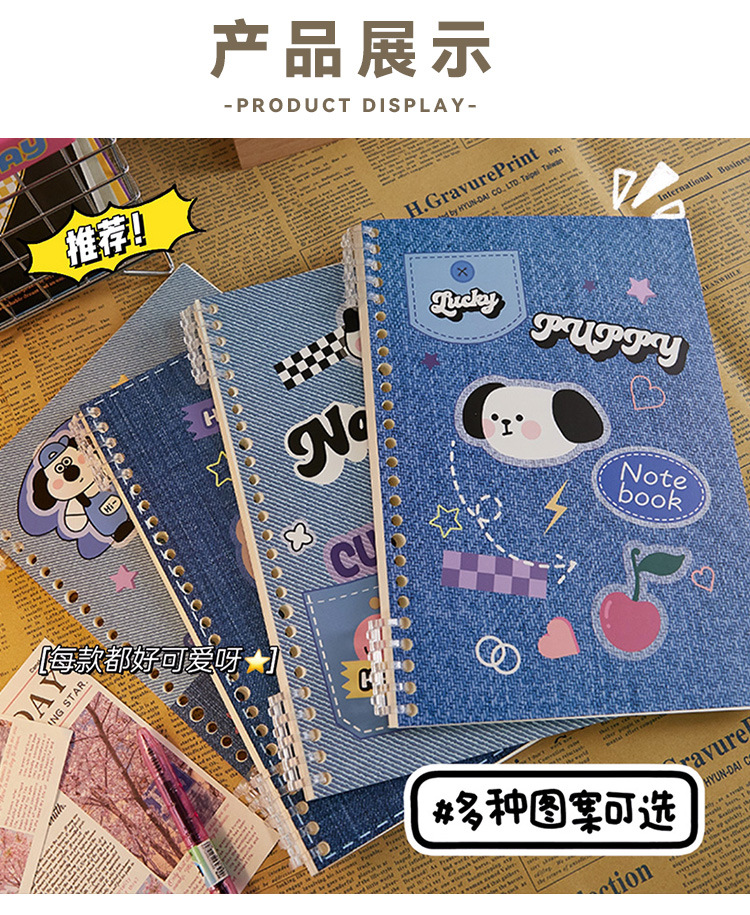 Denim estilo A5 cuaderno de hojas sueltas de alta apariencia portátil extraíble B5 línea horizontal mal cuaderno de grabación de preguntas
