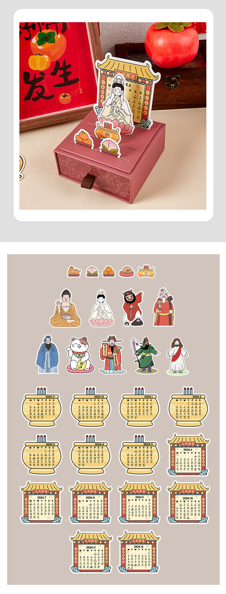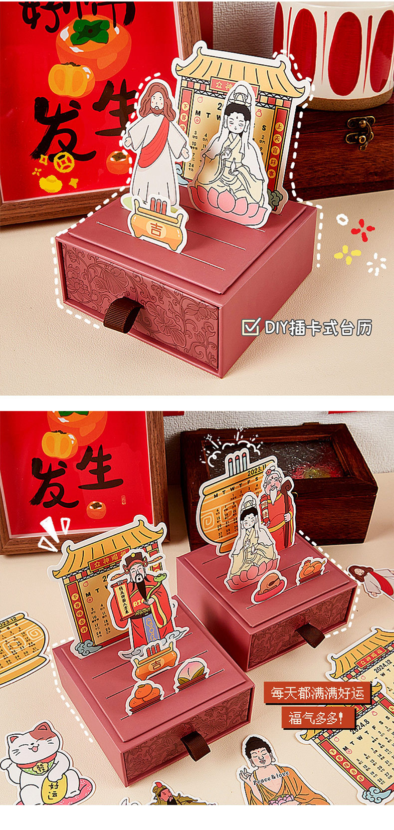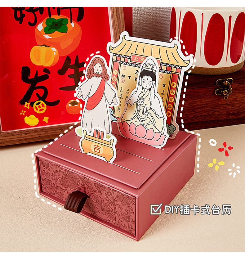 Customizado 2024 Dios bendice cajón calendario de escritorio publicidad corporativa logotipo de impresión a pequeña escala