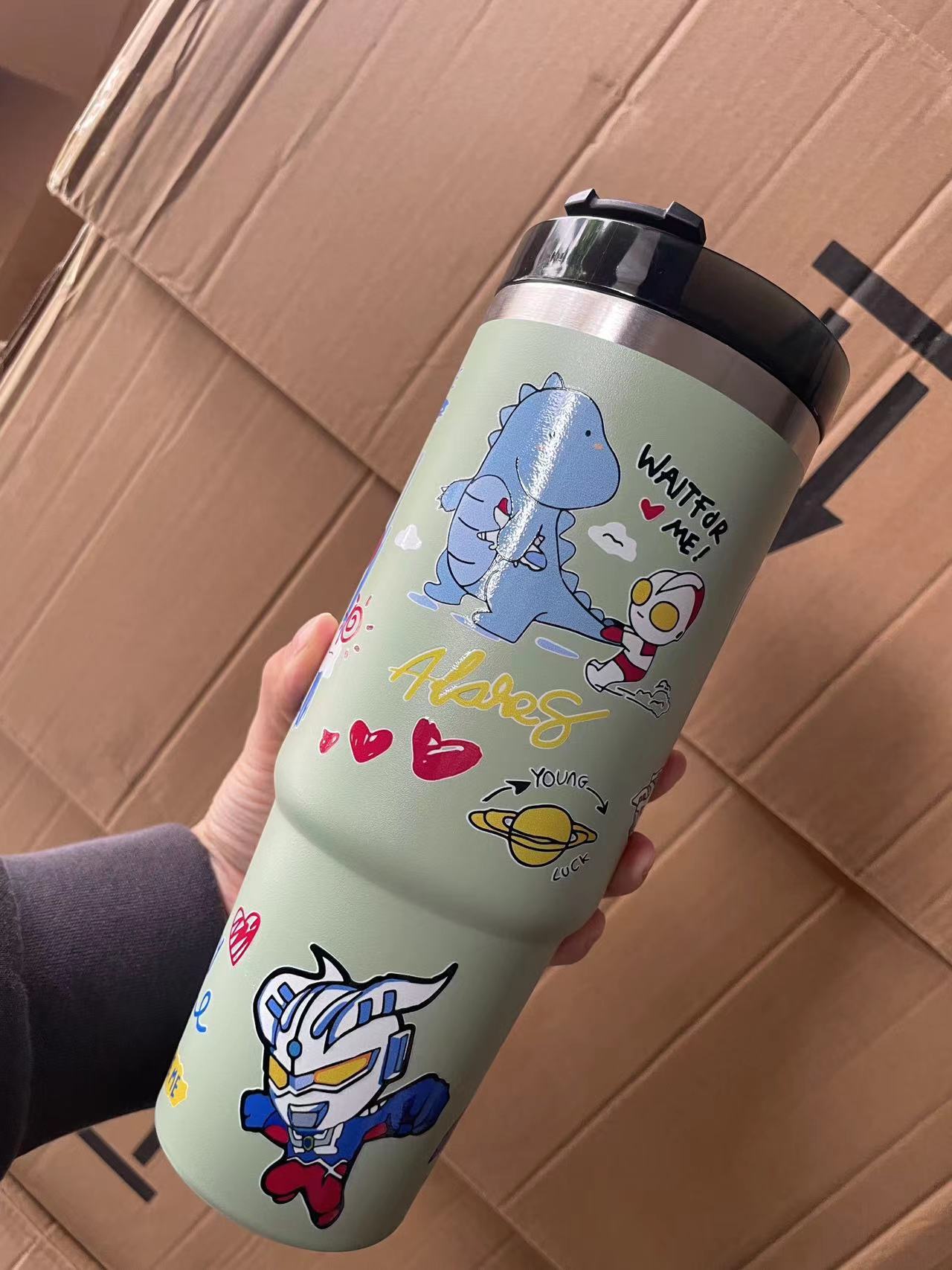 Taza Bingba de 30oz Taza de almacenamiento en frío de gran capacidad Taza de aislamiento de acero inoxidable 304 impresa en 3D Taza de automóvil de vacío