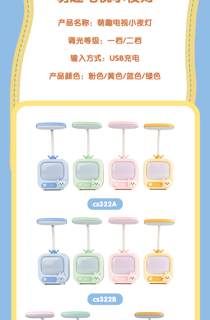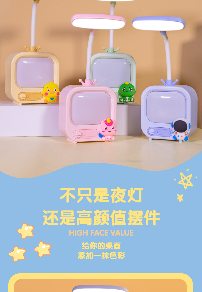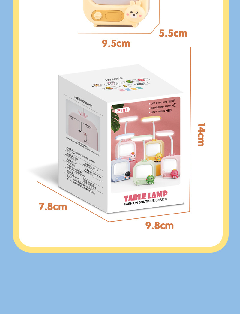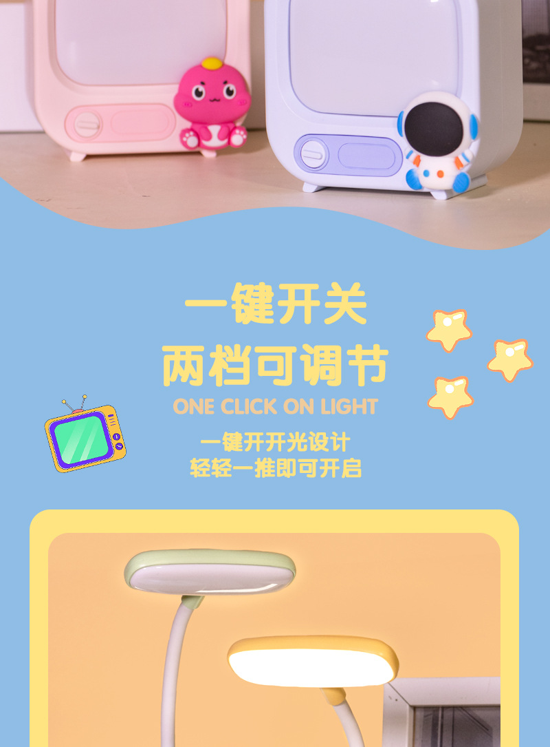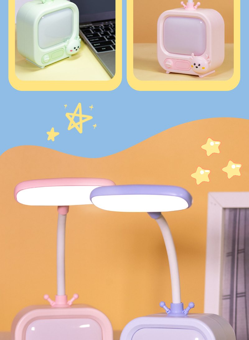 Lámpara de protección para los ojos de aprendizaje para niños Linda luz de noche de dibujos animados lindo dos engranajes ajustable lámpara de mesa recargable dormitorio decoración de escritorio
