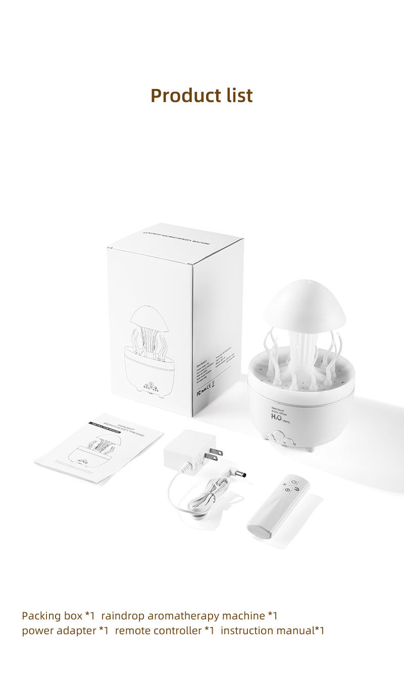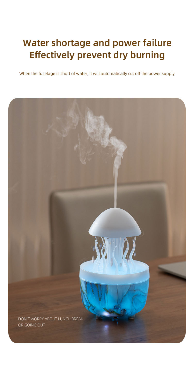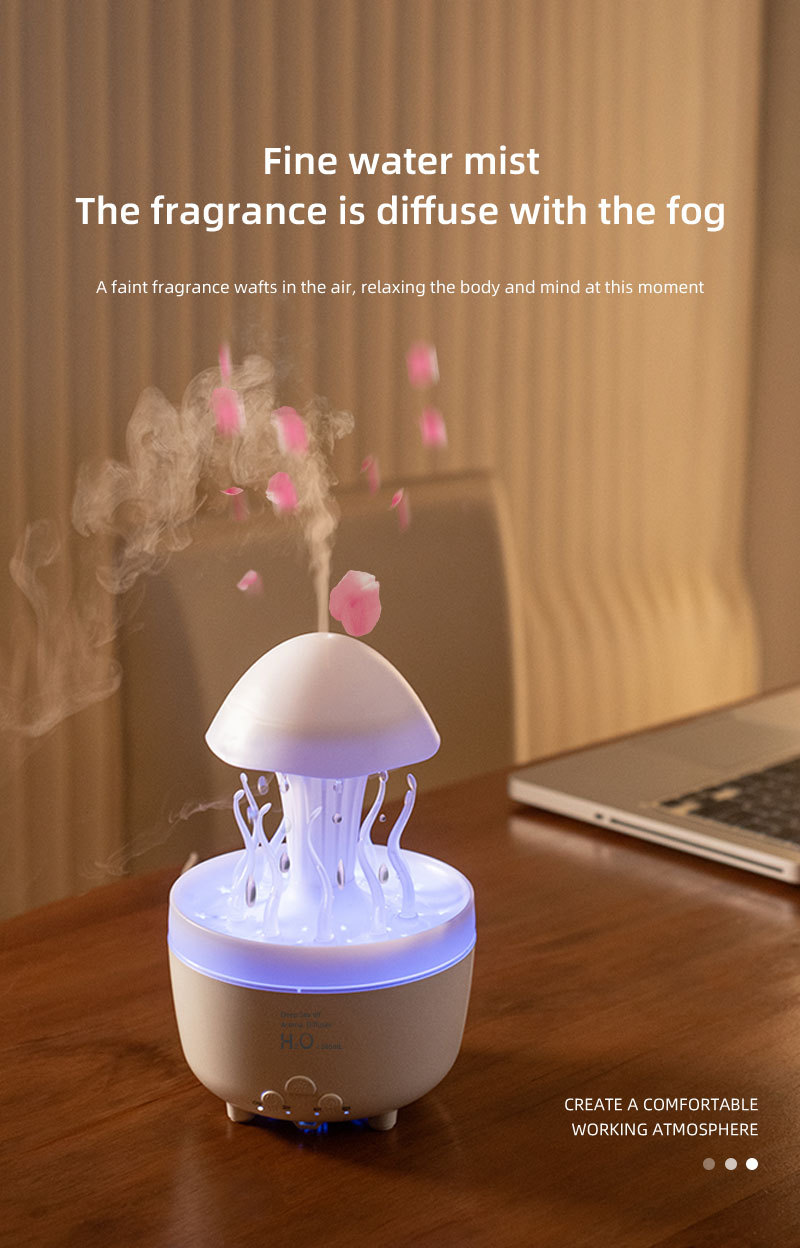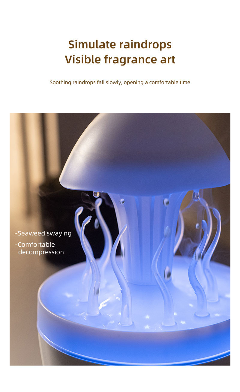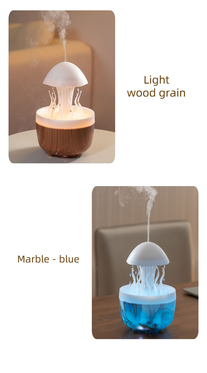 Nuevo control remoto medusa lluvia humidificador giratorio luces de colores atomización ultrasónica gotas de lluvia humidificación nube lluvia fragancia de hongos