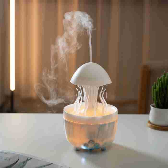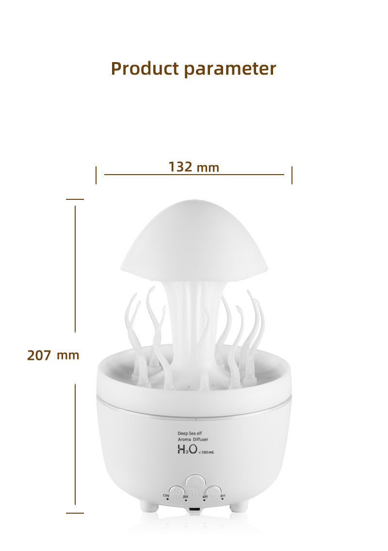 Humidificador de lluvia de medusas transfronterizas luces de colores atomización ultrasónica gotas de lluvia humidificación nube lluvia aceite esencial fabricante de máquinas de aromaterapia