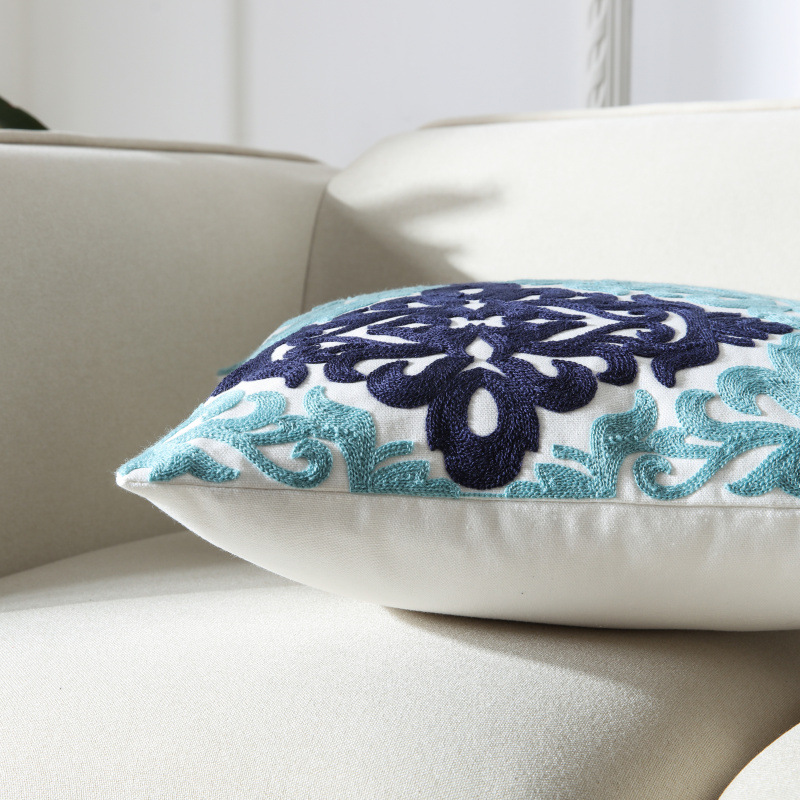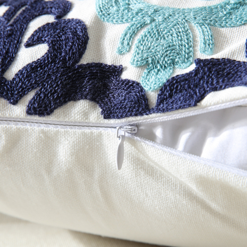 Pastoral flores bordado algodón cojín cabecero sofá silla cintura respaldo funda de almohada de coche pelo de una pieza
