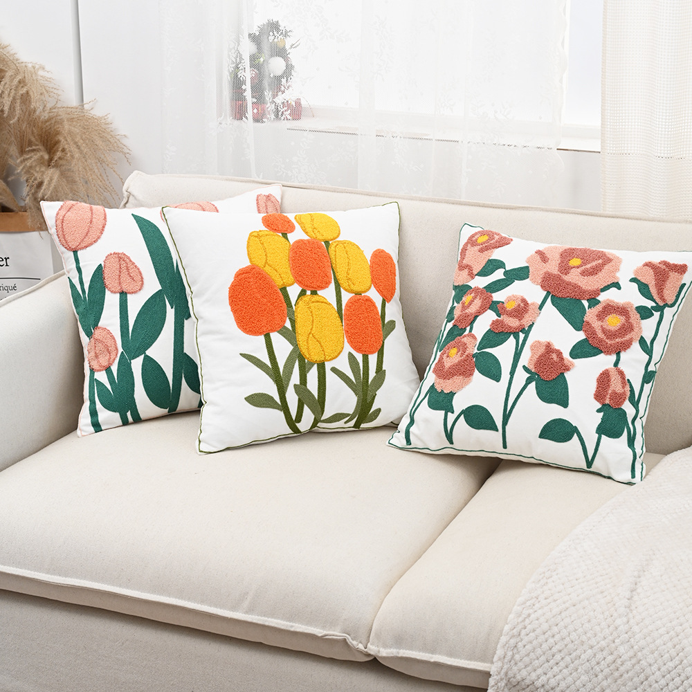 Nordic ins sala de estar toalla bordada sofá almohada cojín pequeño modelo fresco habitación almohada de respaldo de cabecera funda de almohada