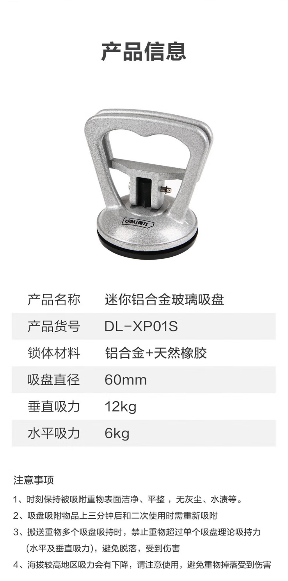 Ventosa de vidrio Deli aleación de aluminio mini de una sola pata de azulejos fuertes ventosa techo huso reparación multifuncional