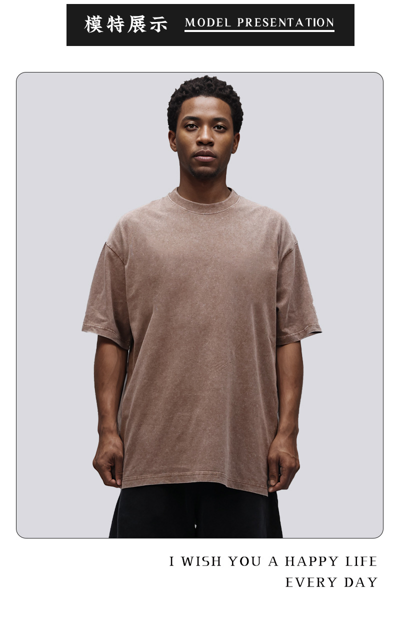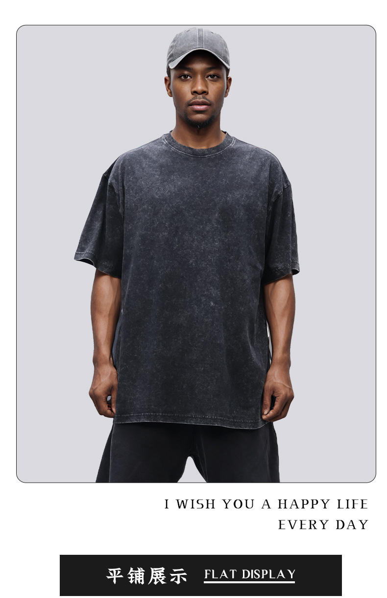 Verano nuevo producto pesado 270G retro lavado y desgastado camiseta de manga corta para hombre de algodón suelto camiseta de batik retro para hombre