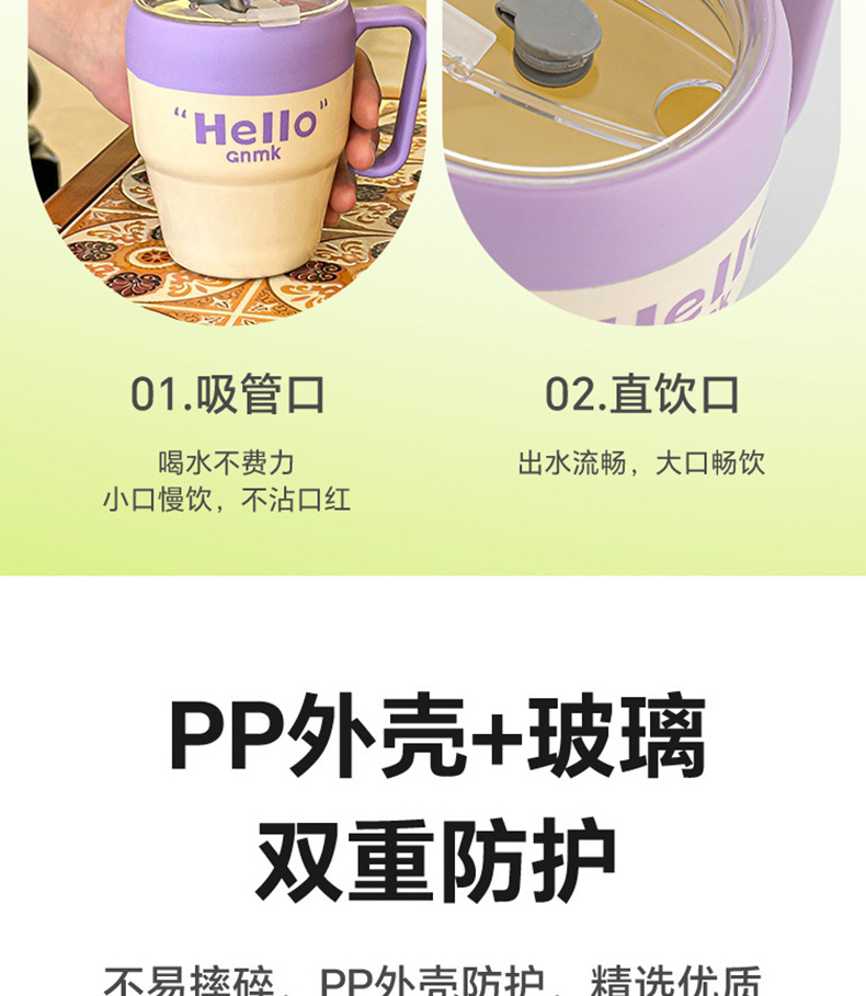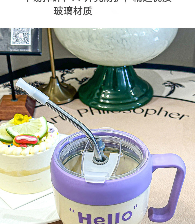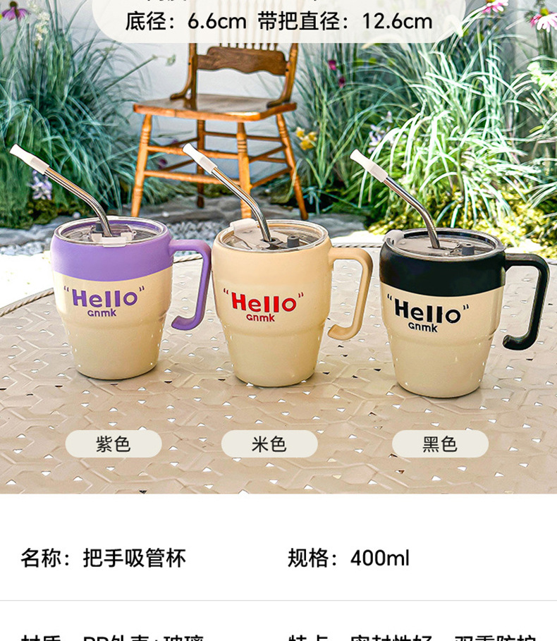 Taza de vidrio de pajita simple y de alto valor con mango
