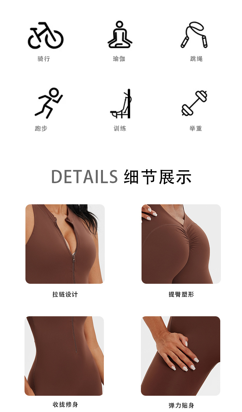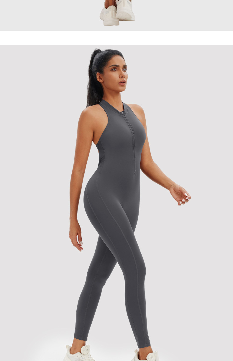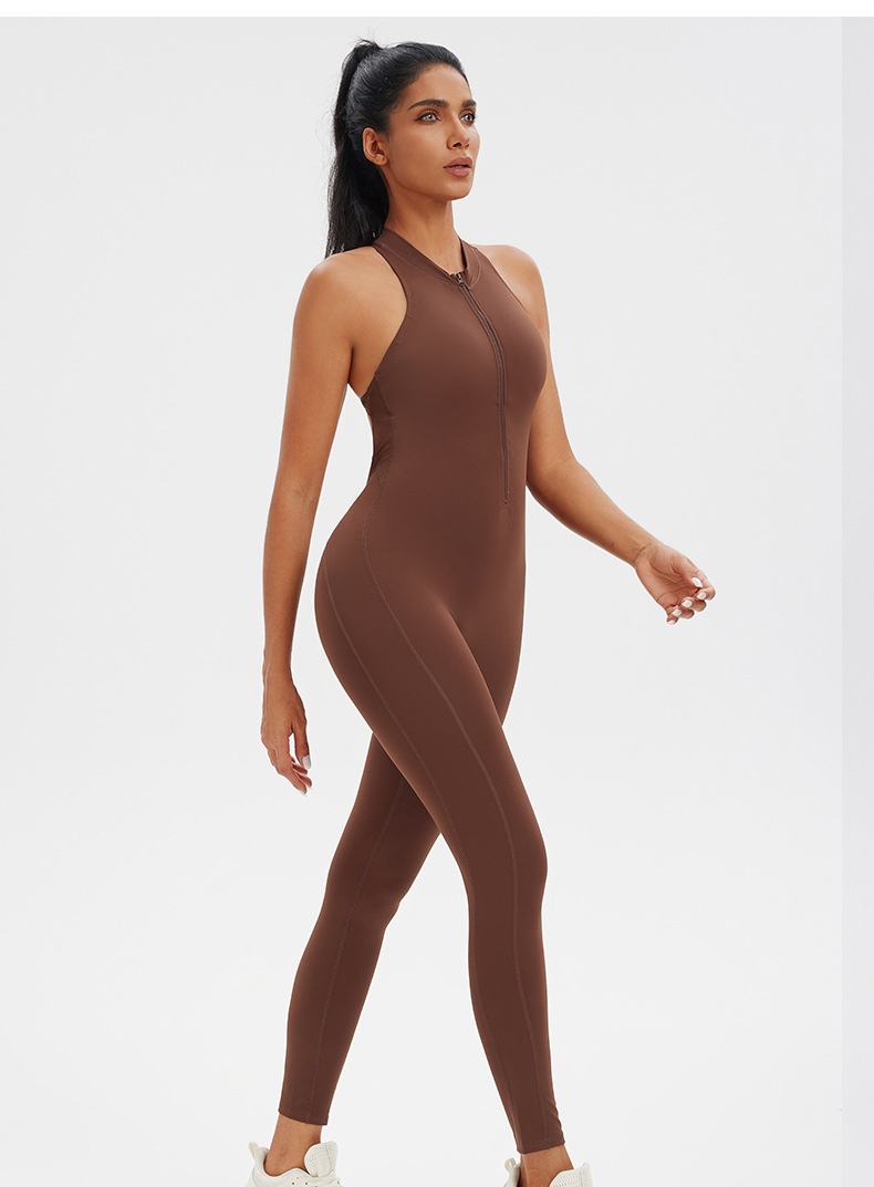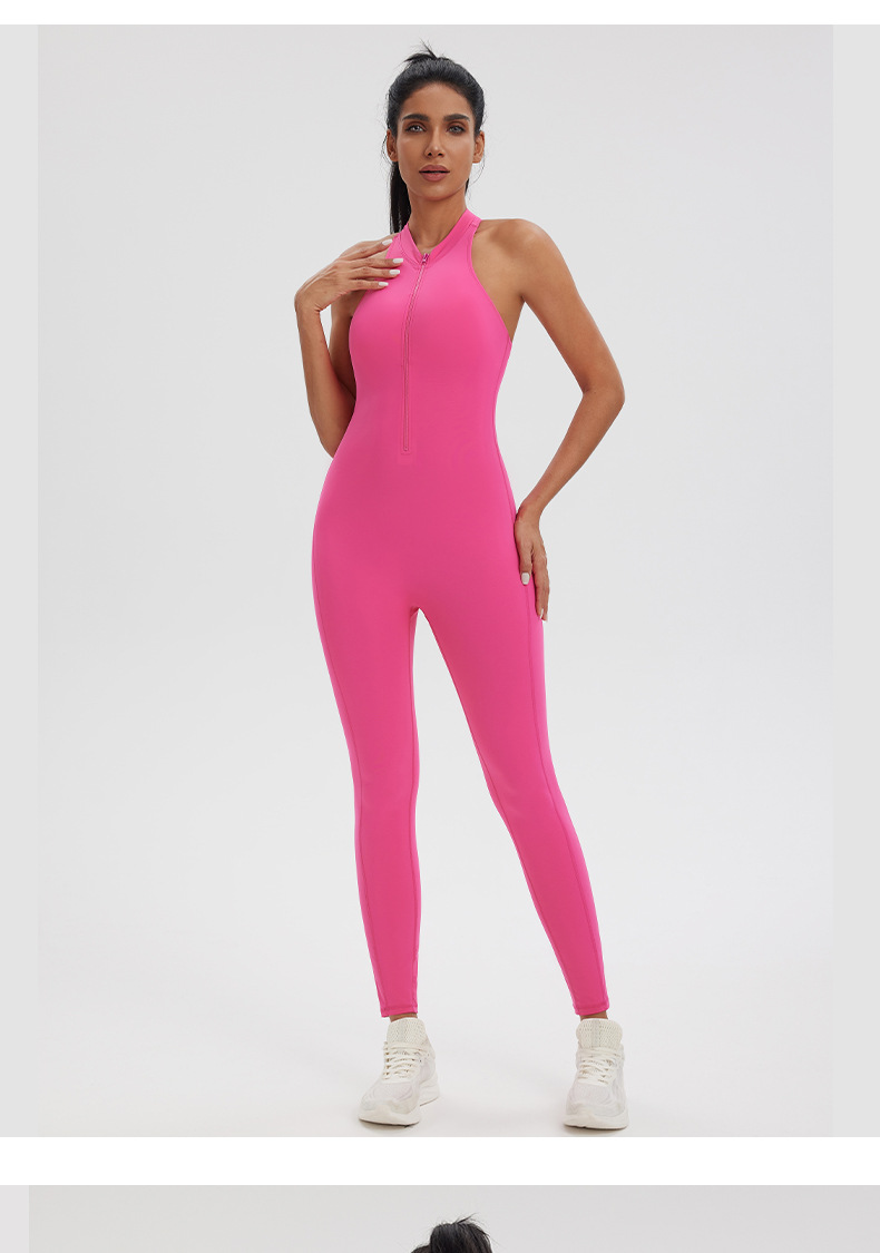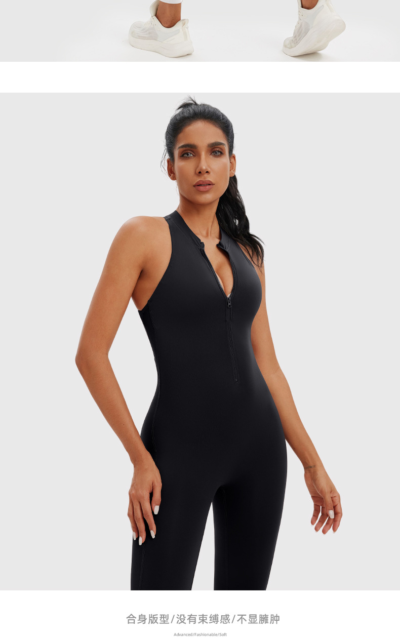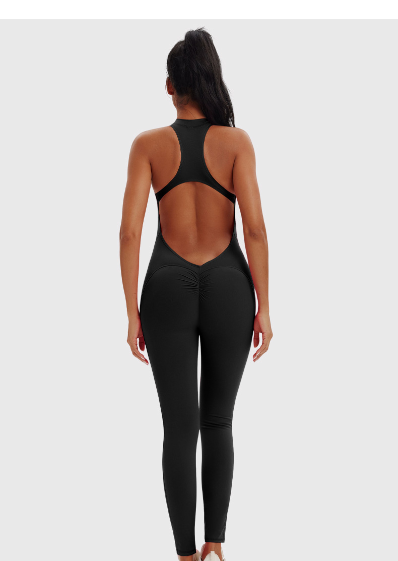 Ropa de yoga de una pieza con cremallera de una pieza desnuda, espalda hueca, pantalones de yoga de una pieza de fitness para correr, mono deportivo