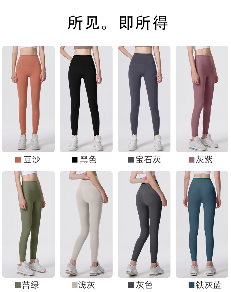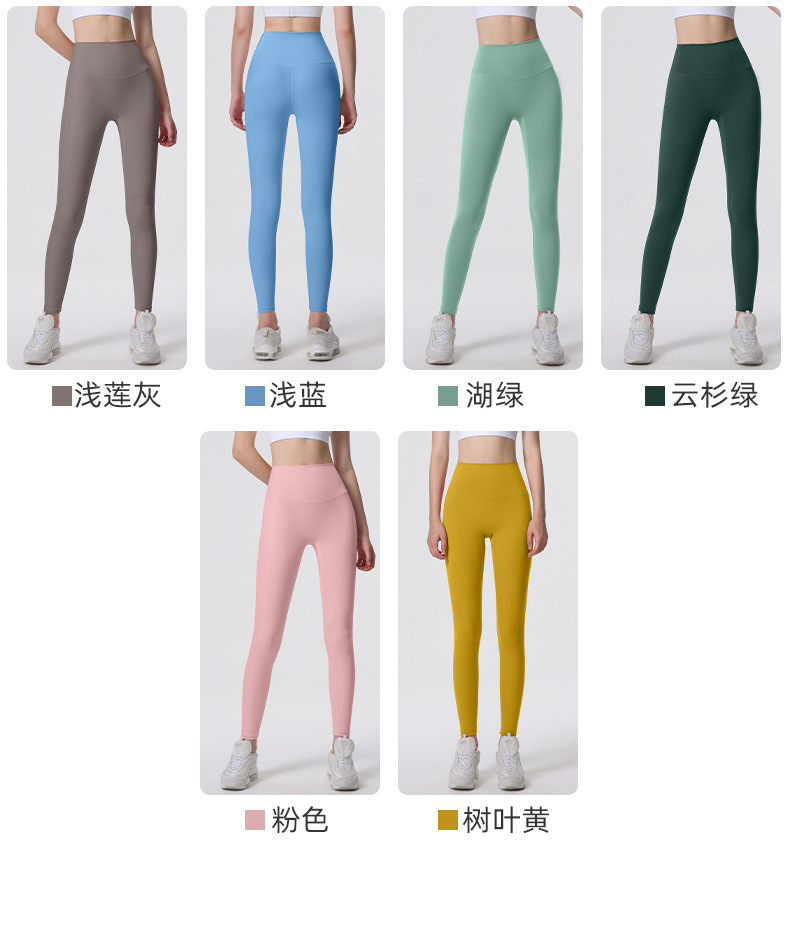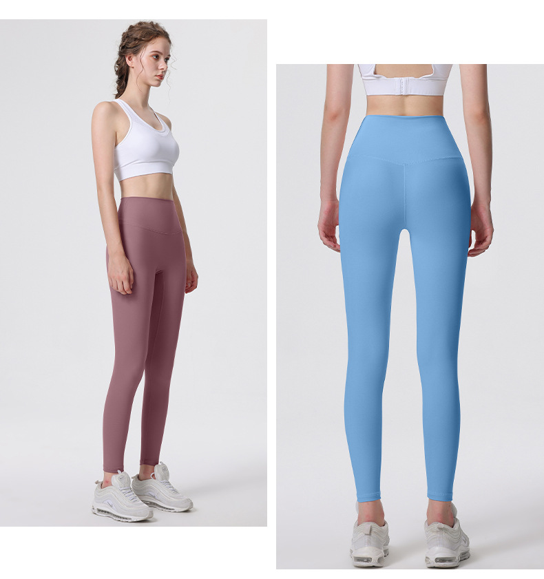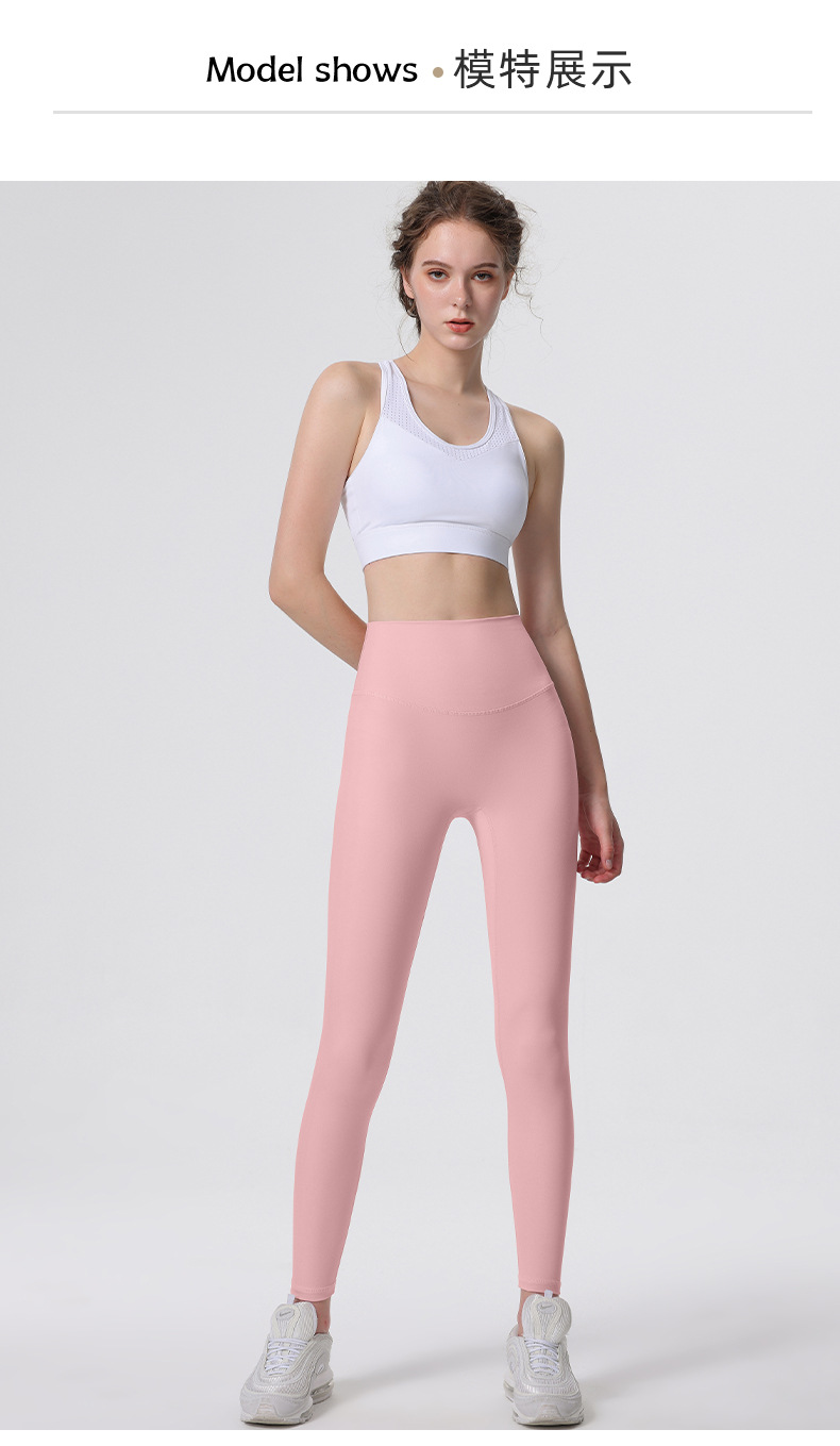 Nuevos deportes de yoga cintura alta desnuda sensación de no vergüenza línea piel-friendly levantamiento de la cadera del vientre que no se contrae la caída de la aptitud de las mujeres pantalones recortados